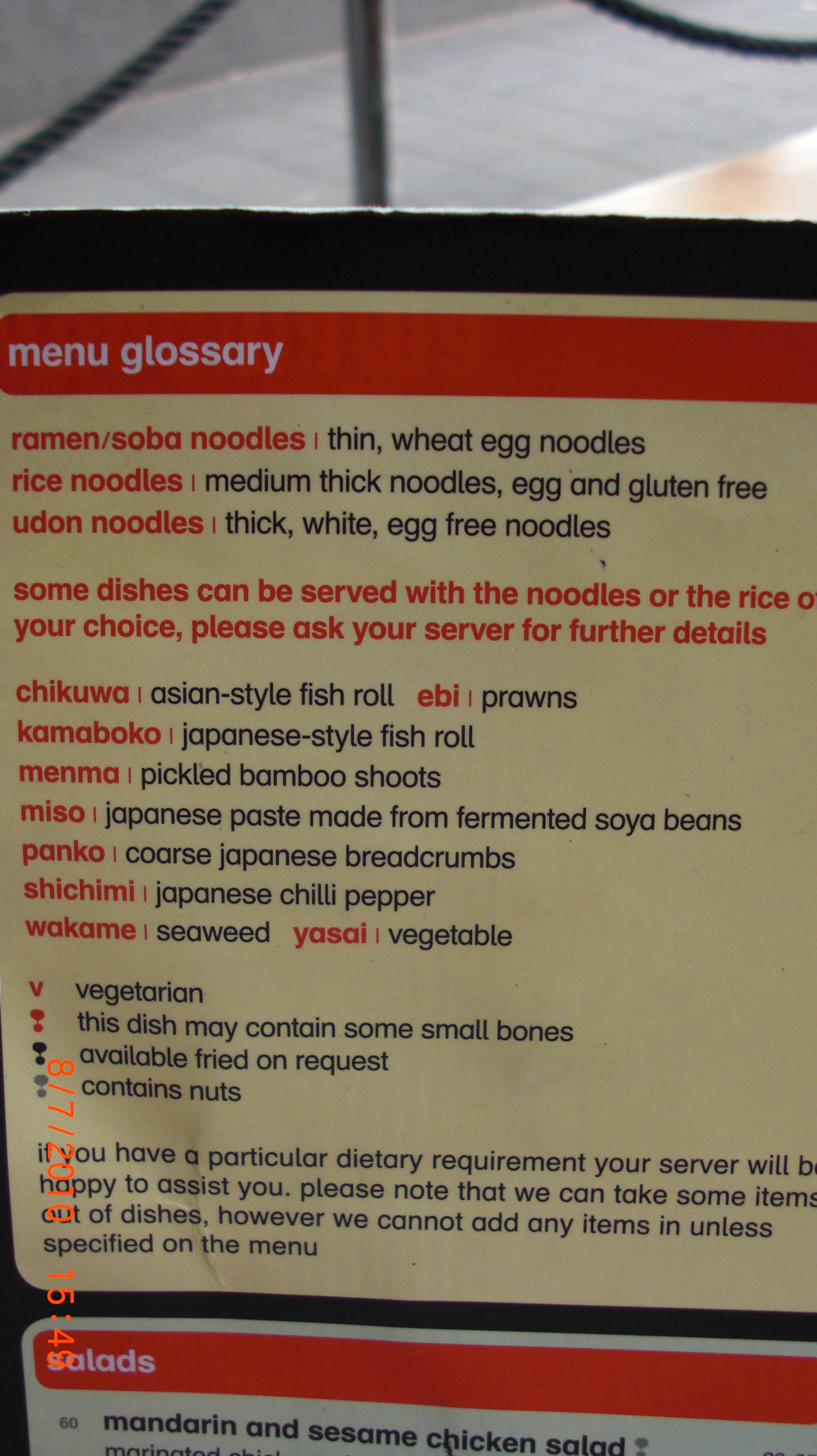 An interesting glossary on the menu.
