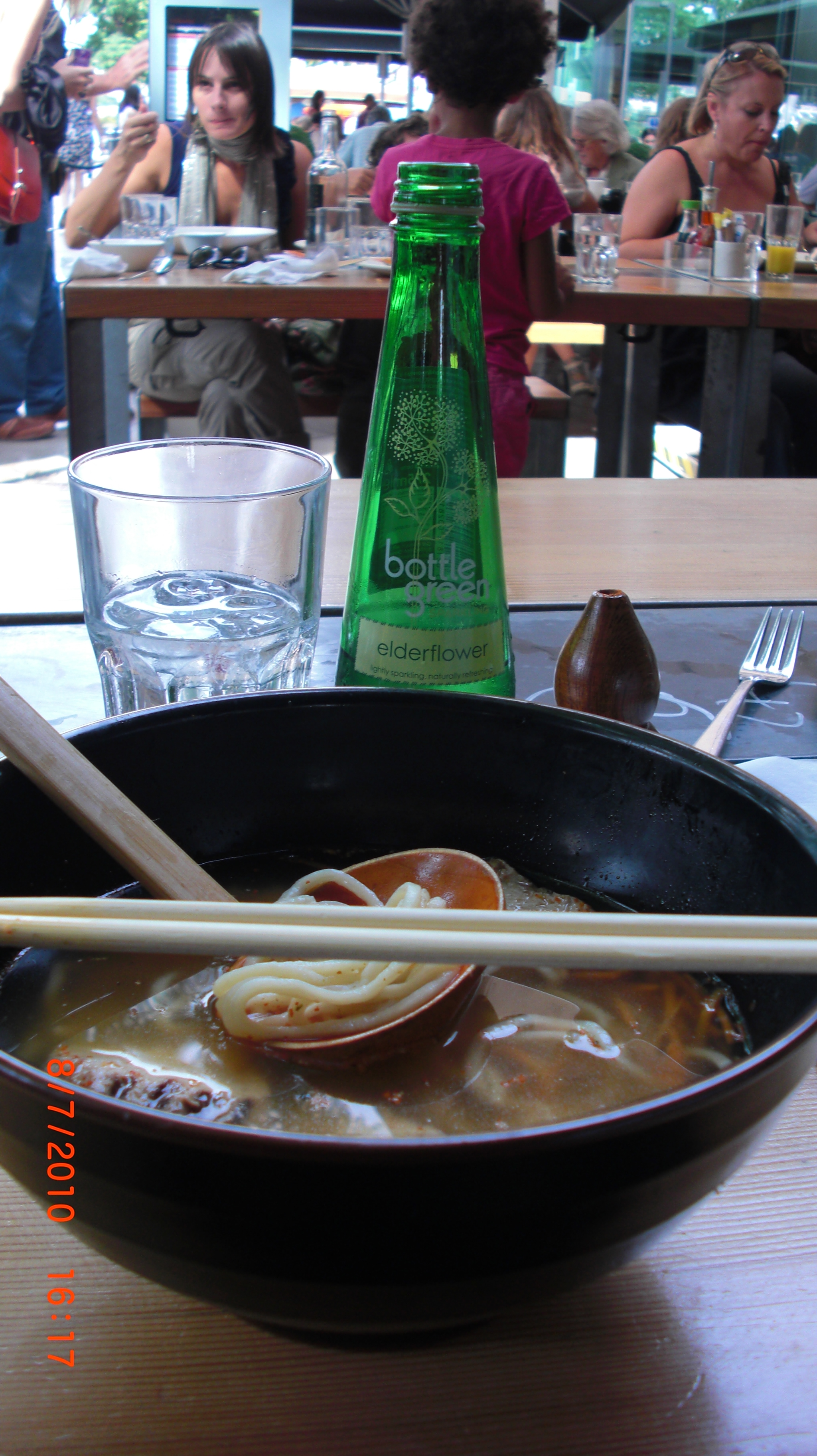 Touring London along the Thames is a good time.  Good exercise to walk and see the sites.  We stopped for a late lunch while walking along the Thames at a noodle place that claimed to serve a bunch of different noodles, Wagamama.