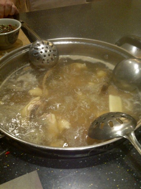 Soup bubbling away.  This time we went with Drunken Chicken soup.