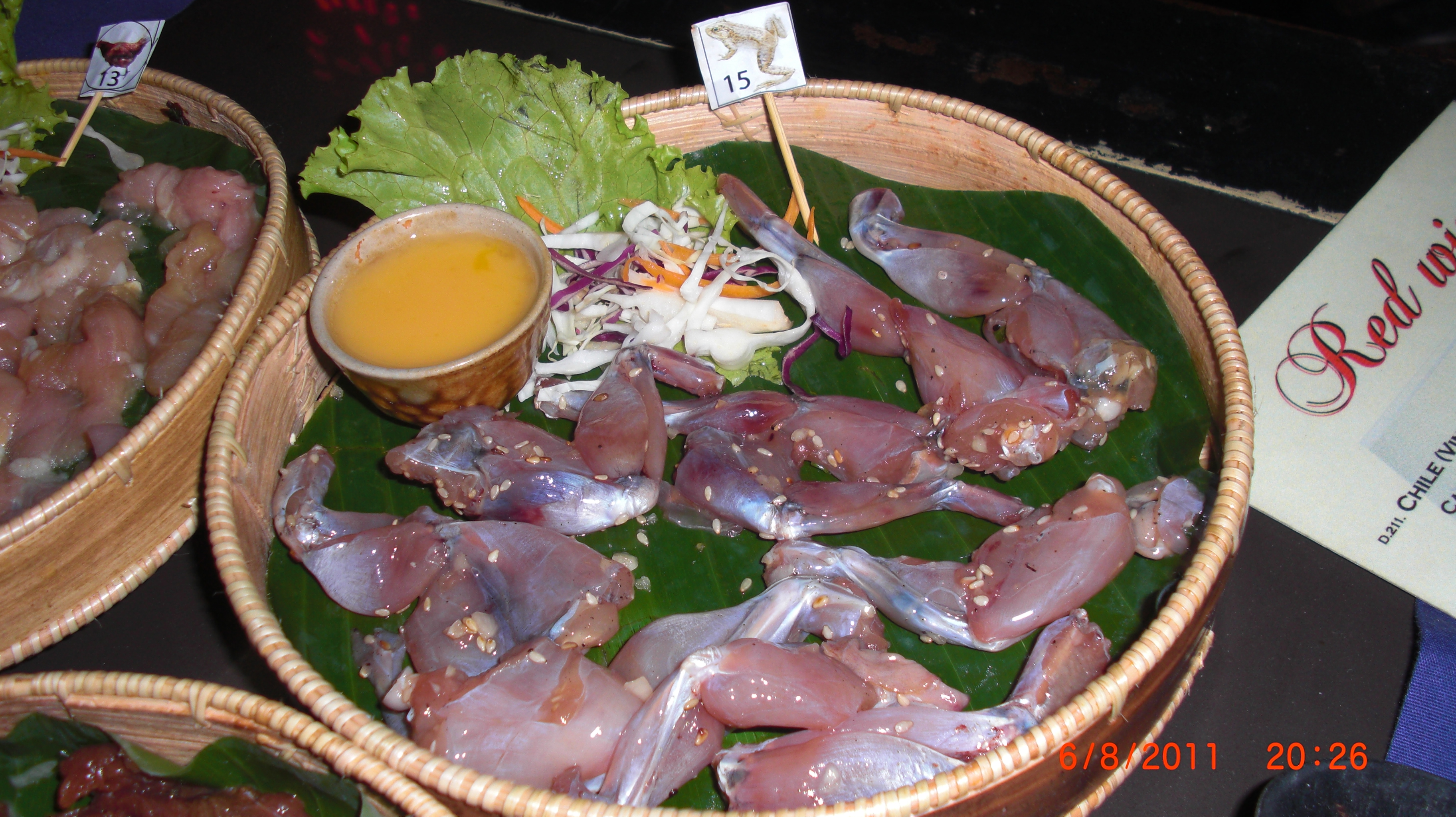 We went for some Frog. You’re supposed to dip it into the sauce/marinade container and then put it on the grill.