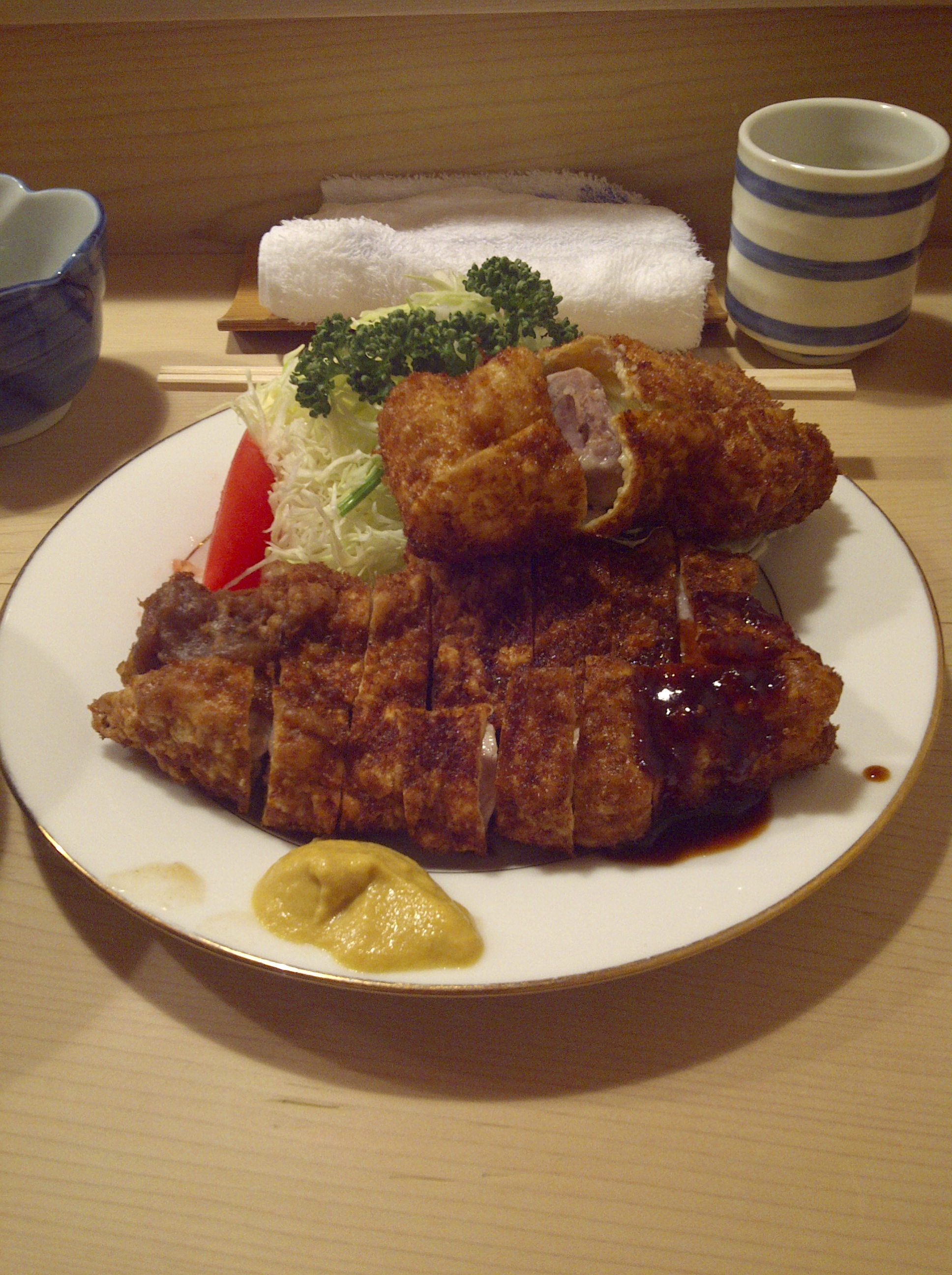 It’s a show unto itself where you watch the old man take the Tonkatsu out of the oil and then cut it right away! His hands!