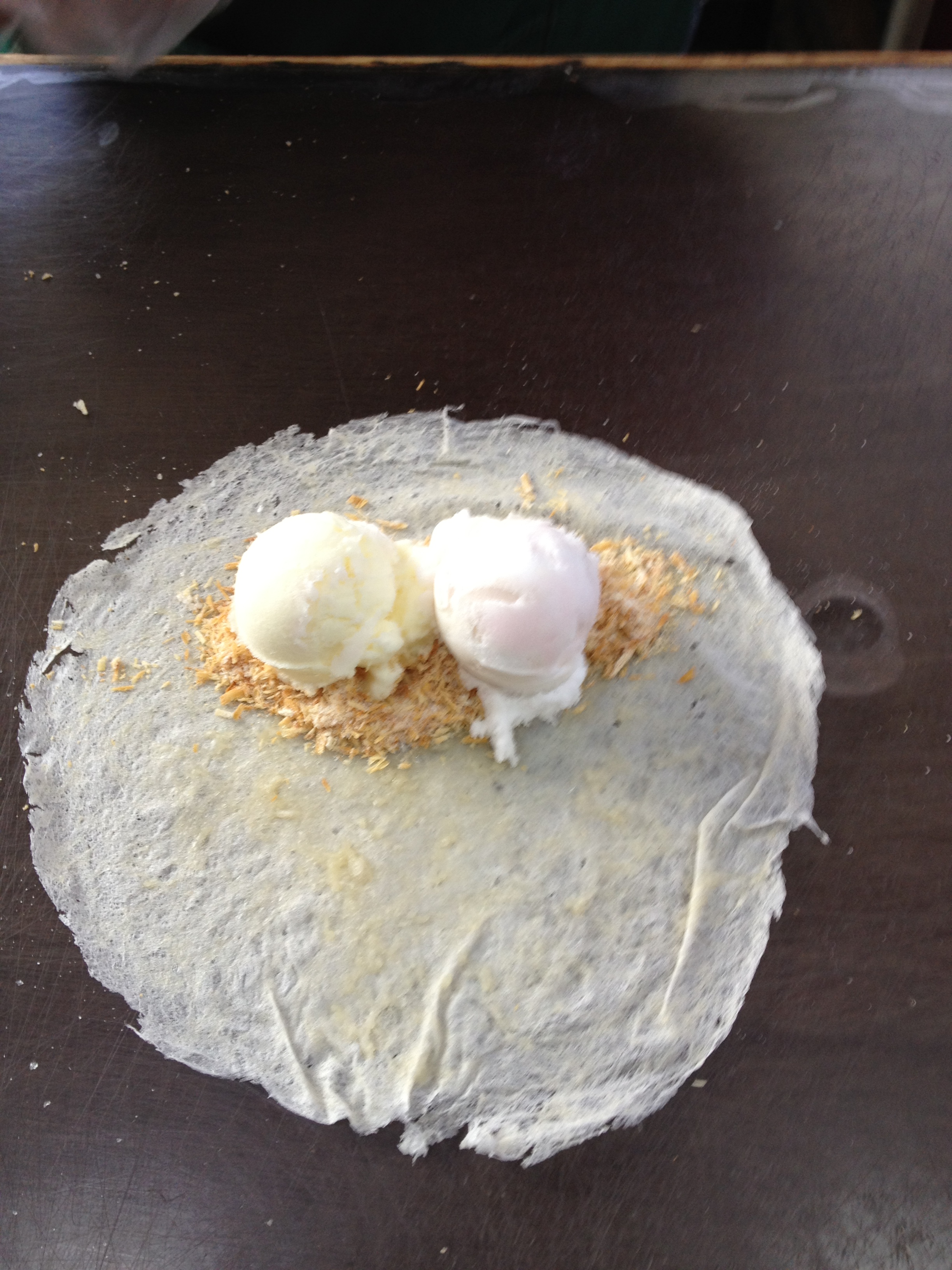 After this we took another walk around the town and found this interesting concoction. Ice Cream with shaved peanut brittle in a crepe, rolled into an egg roll!