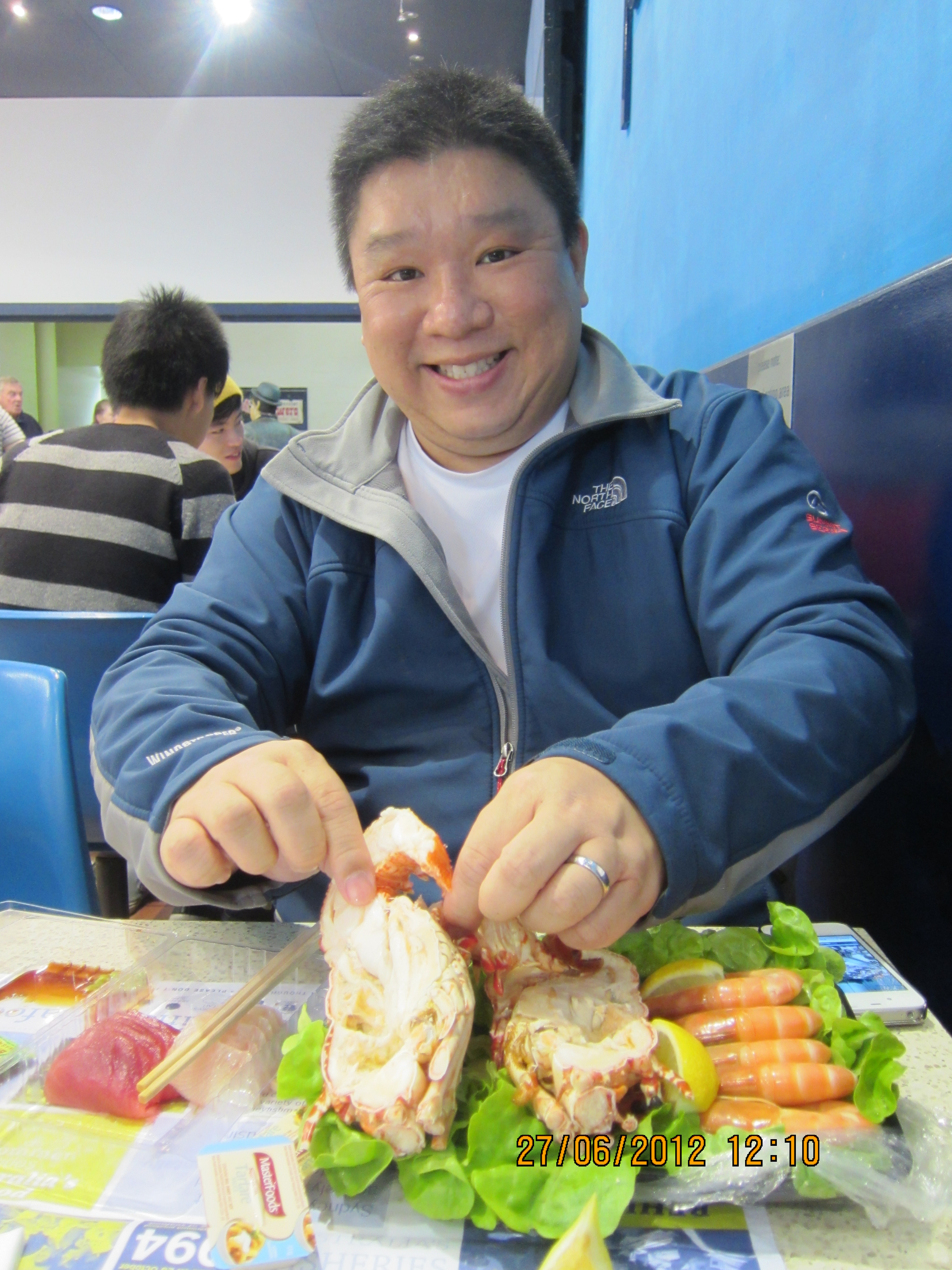 Grilled John Dory fish and some fresh maguro and hamachi and then a whole steamed lobster with prawns.  Yum, yum, yum!