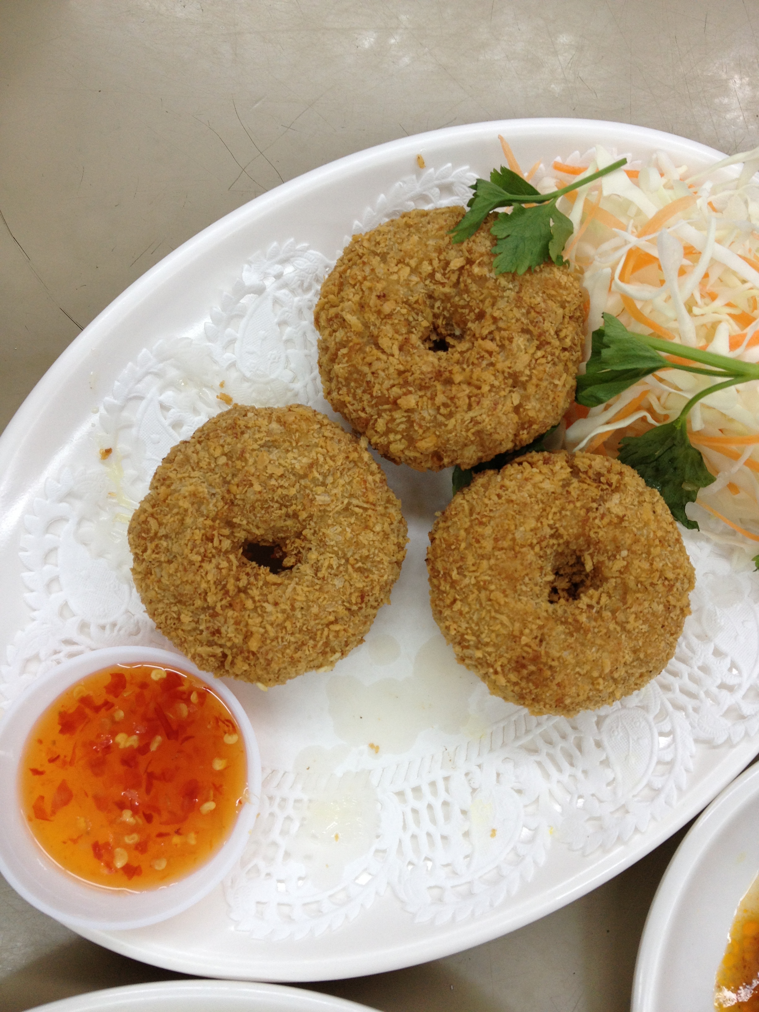 Prawn Cakes.  Well fried and very tasty.