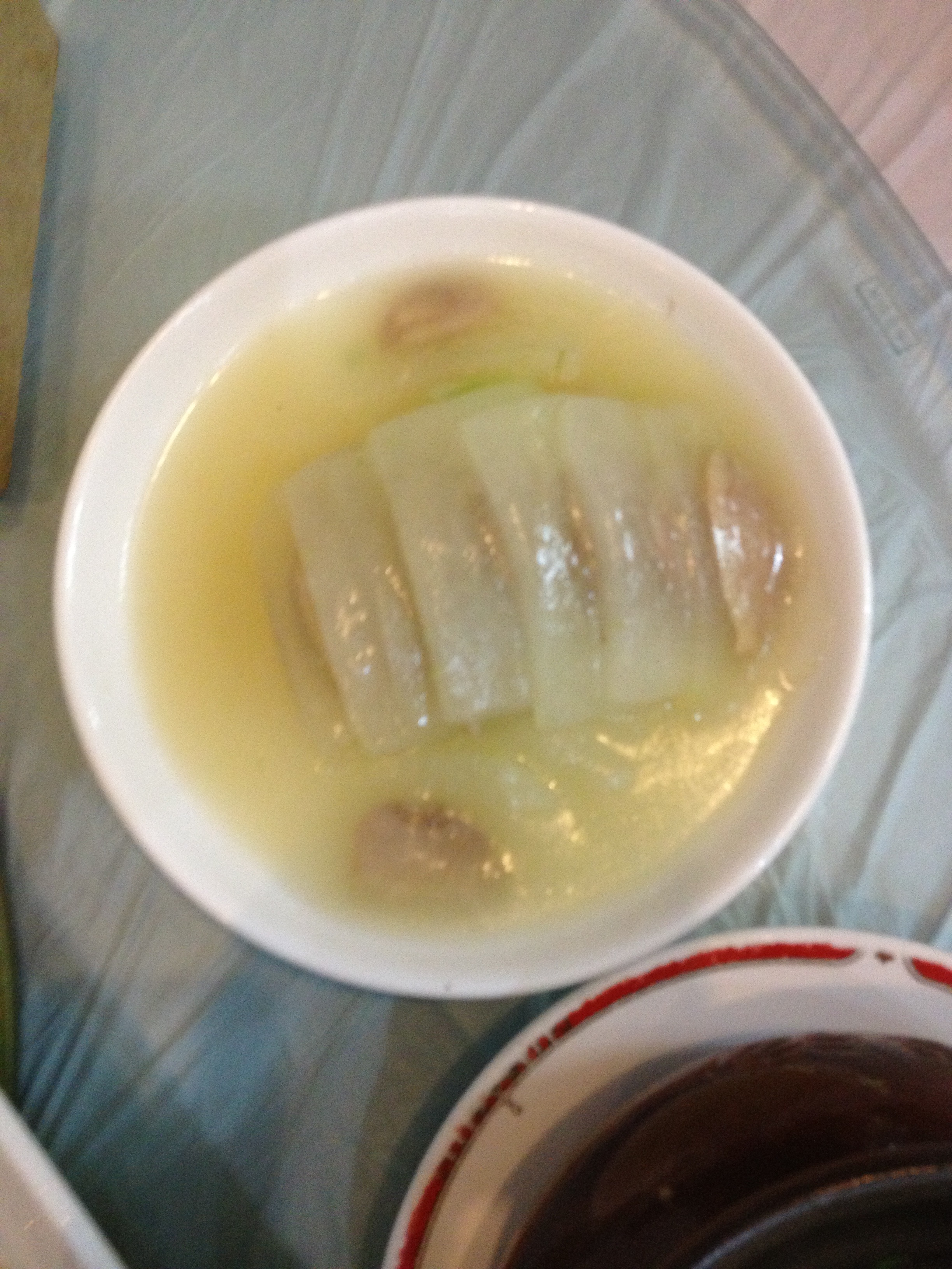 Mashed Potato, Yam, Spare Rib.  Absolutely disgusting.  Looks like dog food.