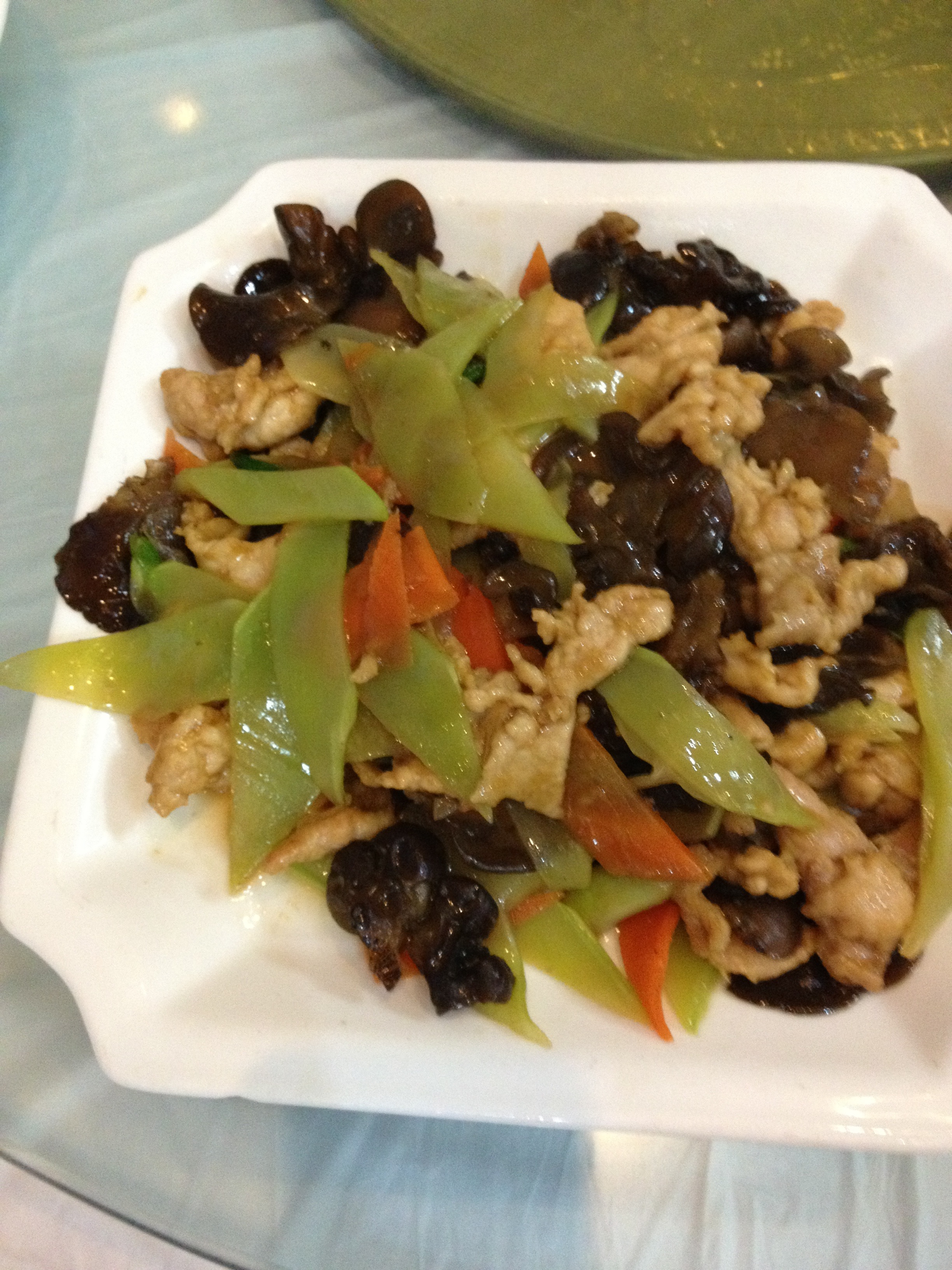 Stir Fried Pork with Wood Fungus and Veggie.  Ok.