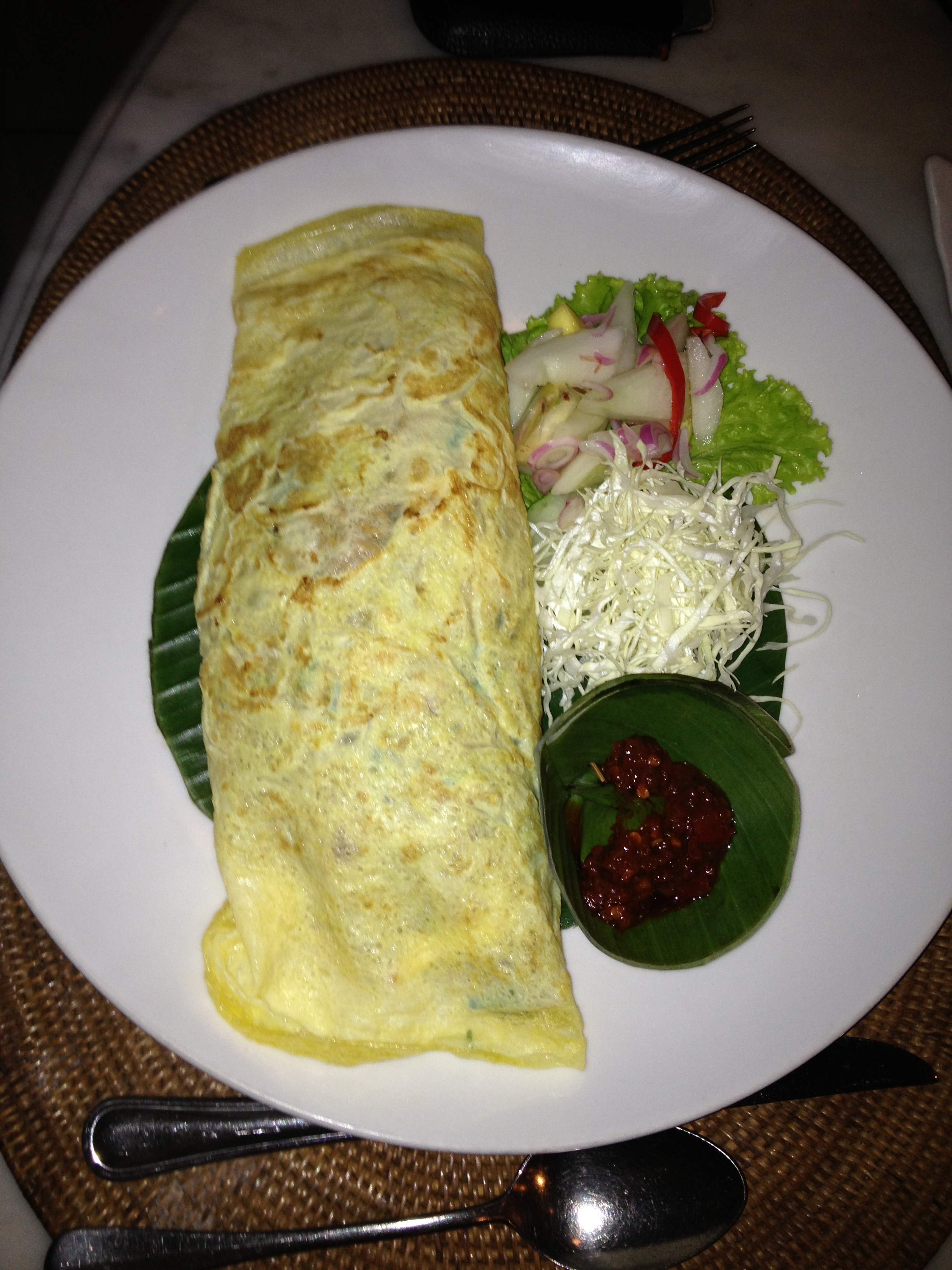 Seafood Nasi Goreng in a crepe. Very nice.