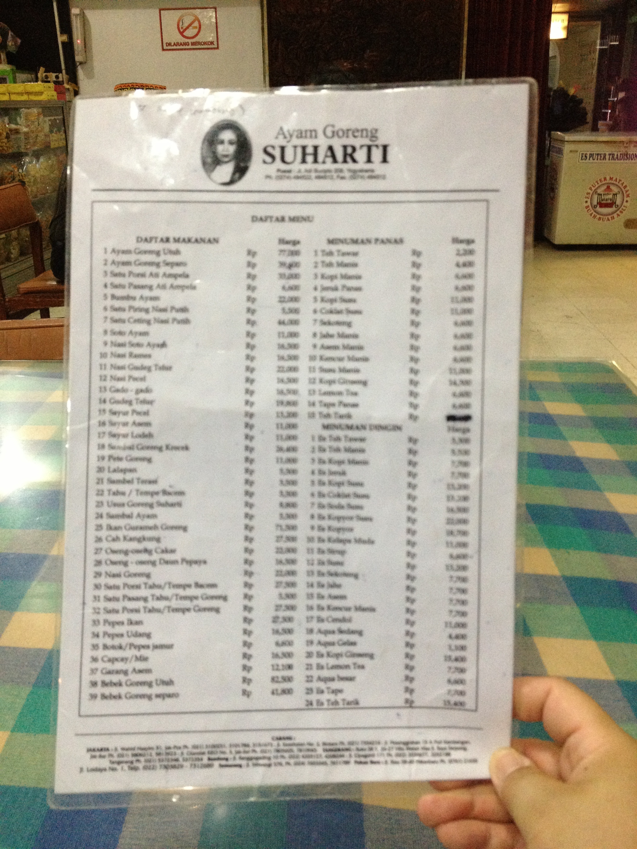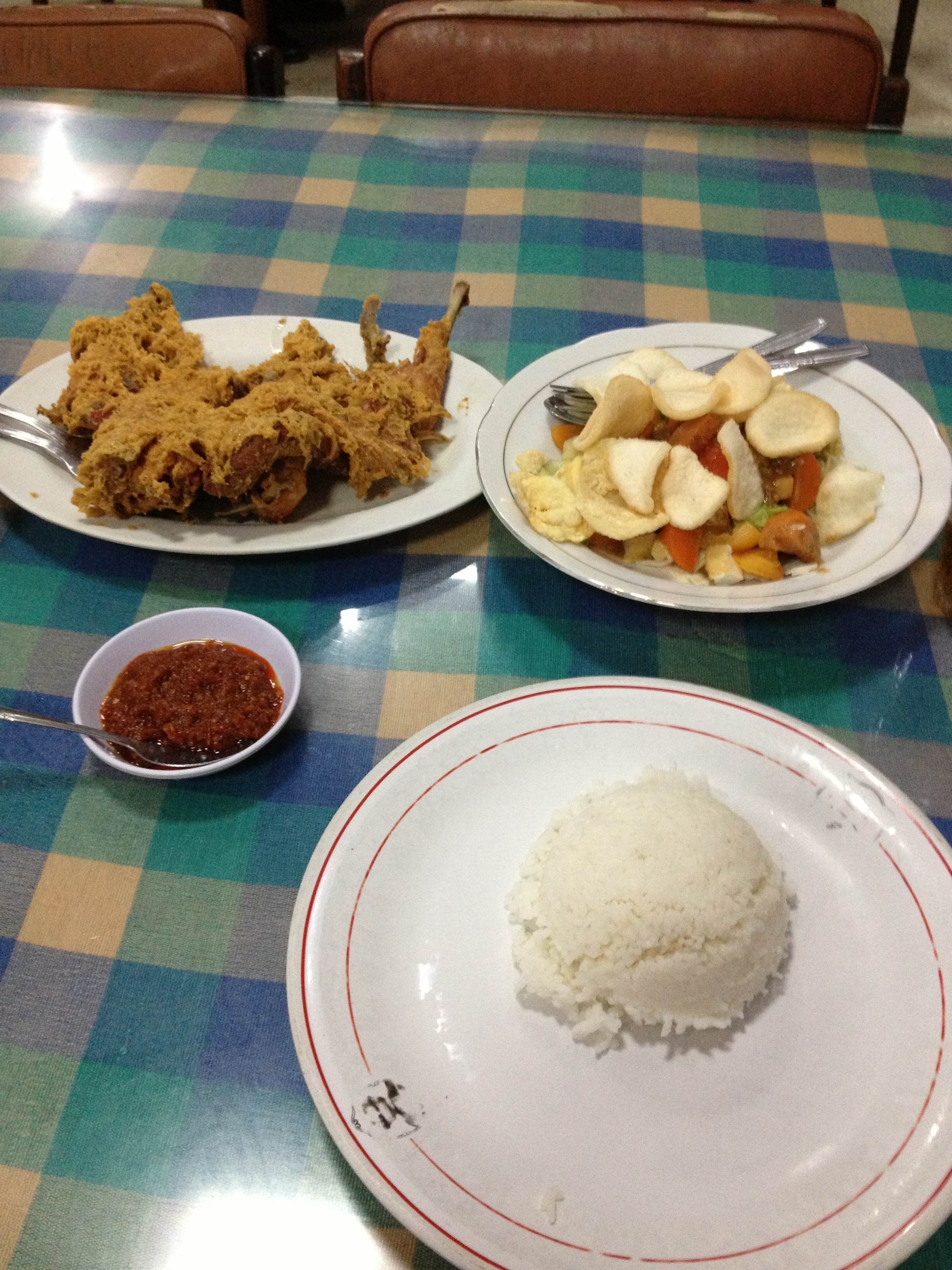 We spent the morning at Prambanan Temple and then we went to the Kraton and a Batik Factory, so by 2pm we were starving. And it being my birthday, we needed chicken. So my suggestion to Lingga and the tour guide was Ayam Goreng Suharti. I had heard so much about it and I needed to try.