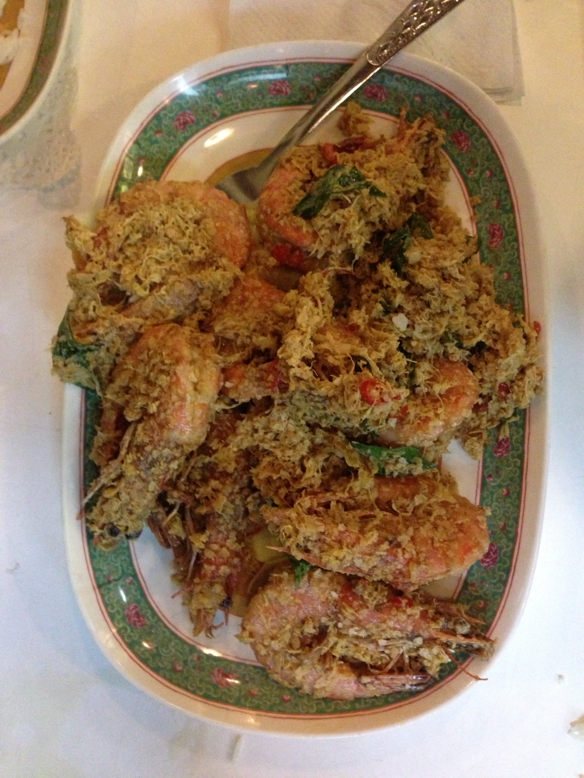 Jo had two items on her list, Cereal Prawn and Ayam Buah Keluak, which is Chicken in a tangy tart sauce with the black nut. You dig the nut out of the shell and eat it with the chicken and rice.
