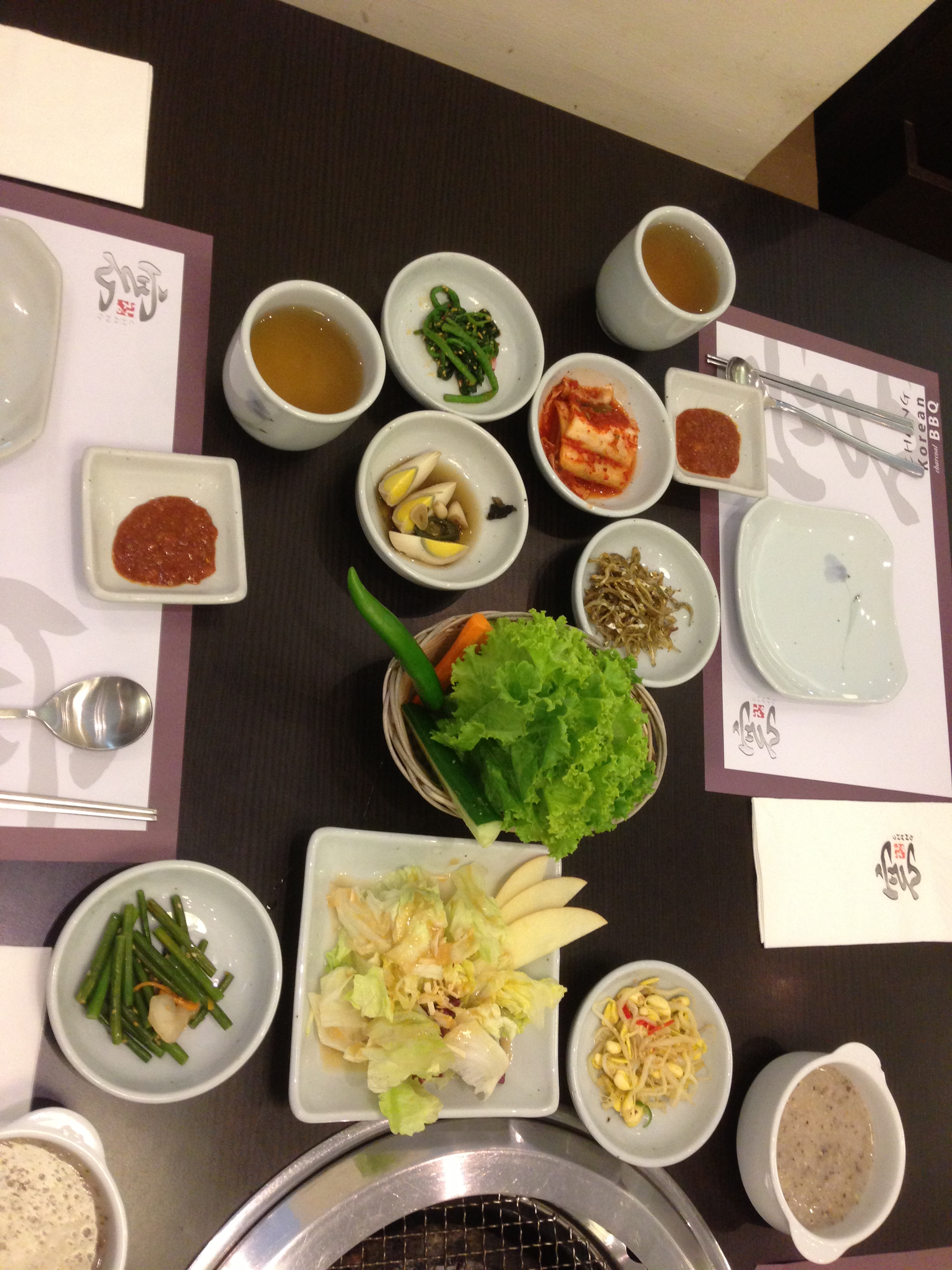 As usual the side dishes started to come. Basket of lettuce and a few other sides. There aren’t many, but it’s quite a number of them.