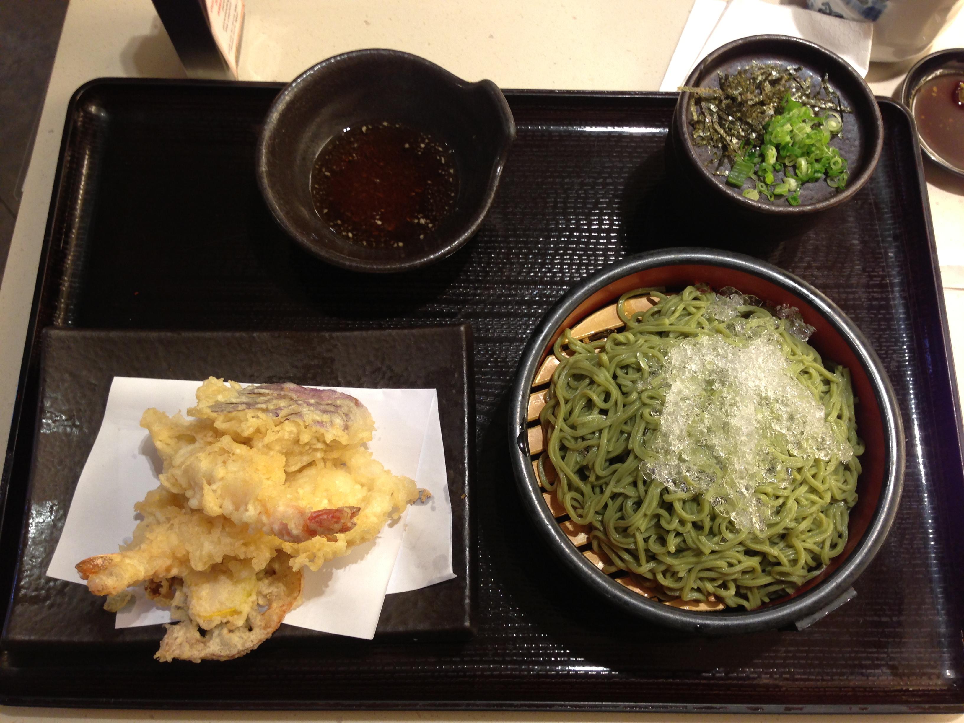 Then I always like a simple Green Tea Soba, chilled, with some tempura. It makes a nice complement to the meal.