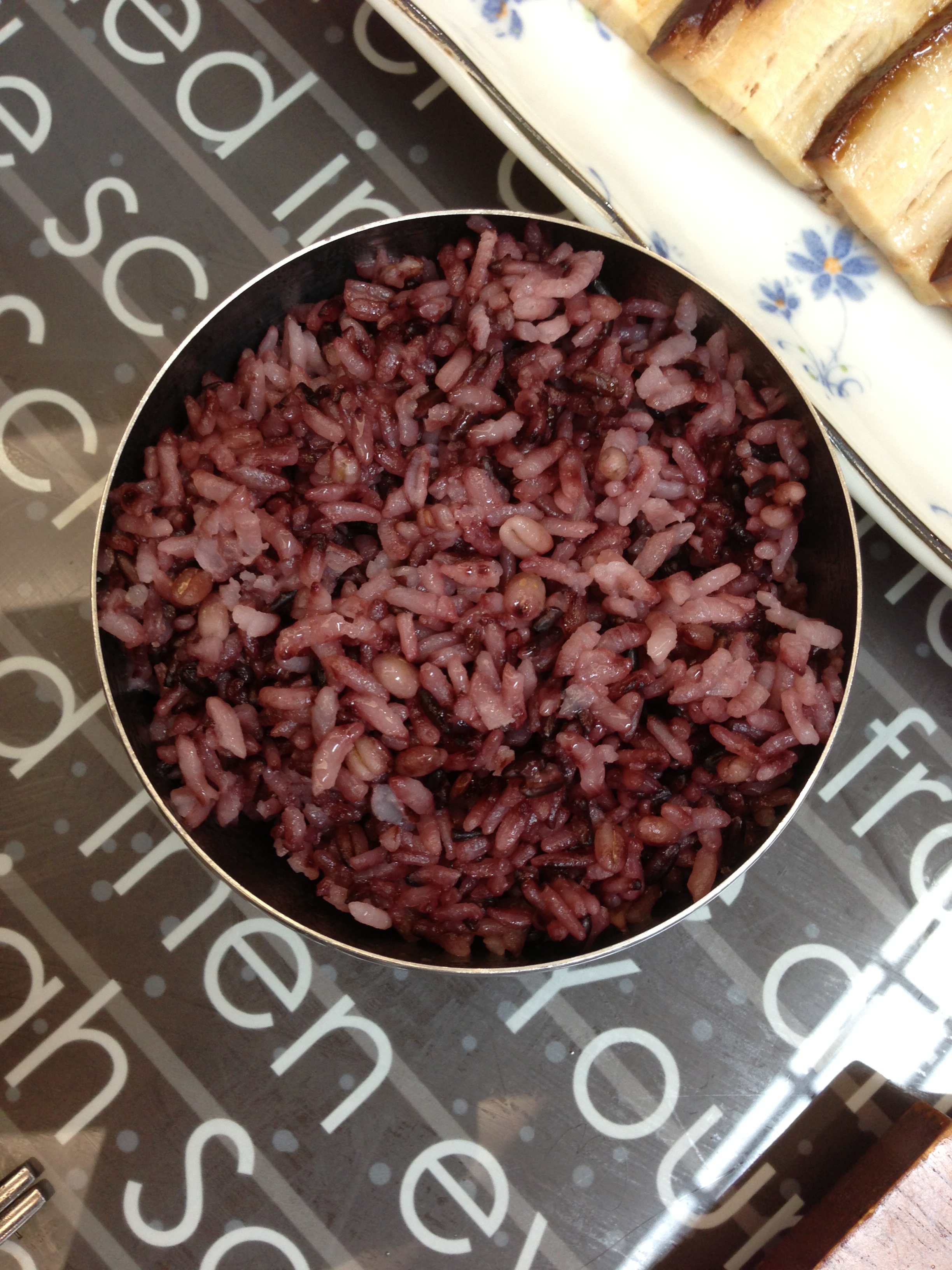 You get two multigrain rices, but you can upsize the rice to bibimbap if you want. So we did.
