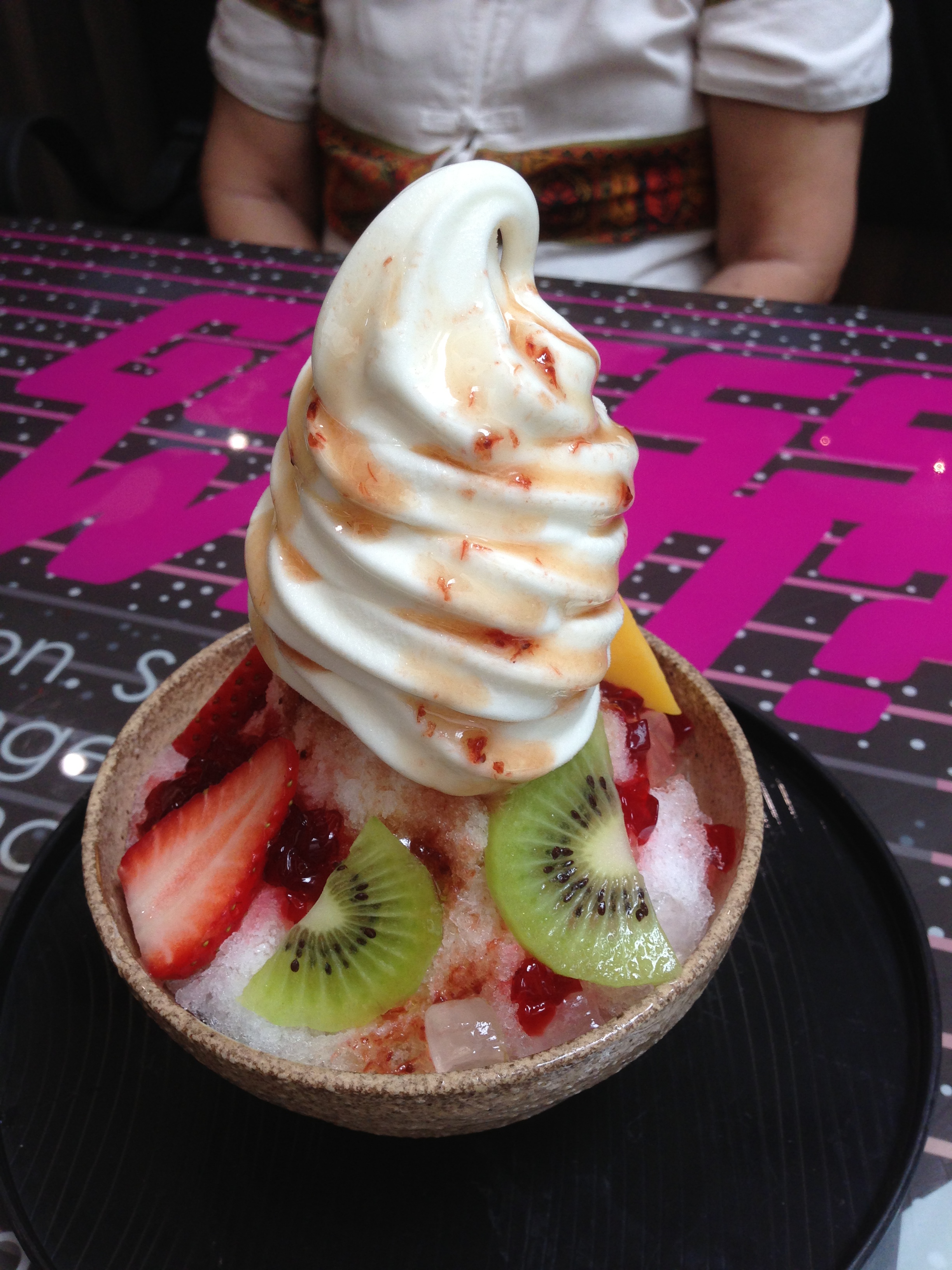 And then dessert is frozen yogurt on ice with fruits. Yum!