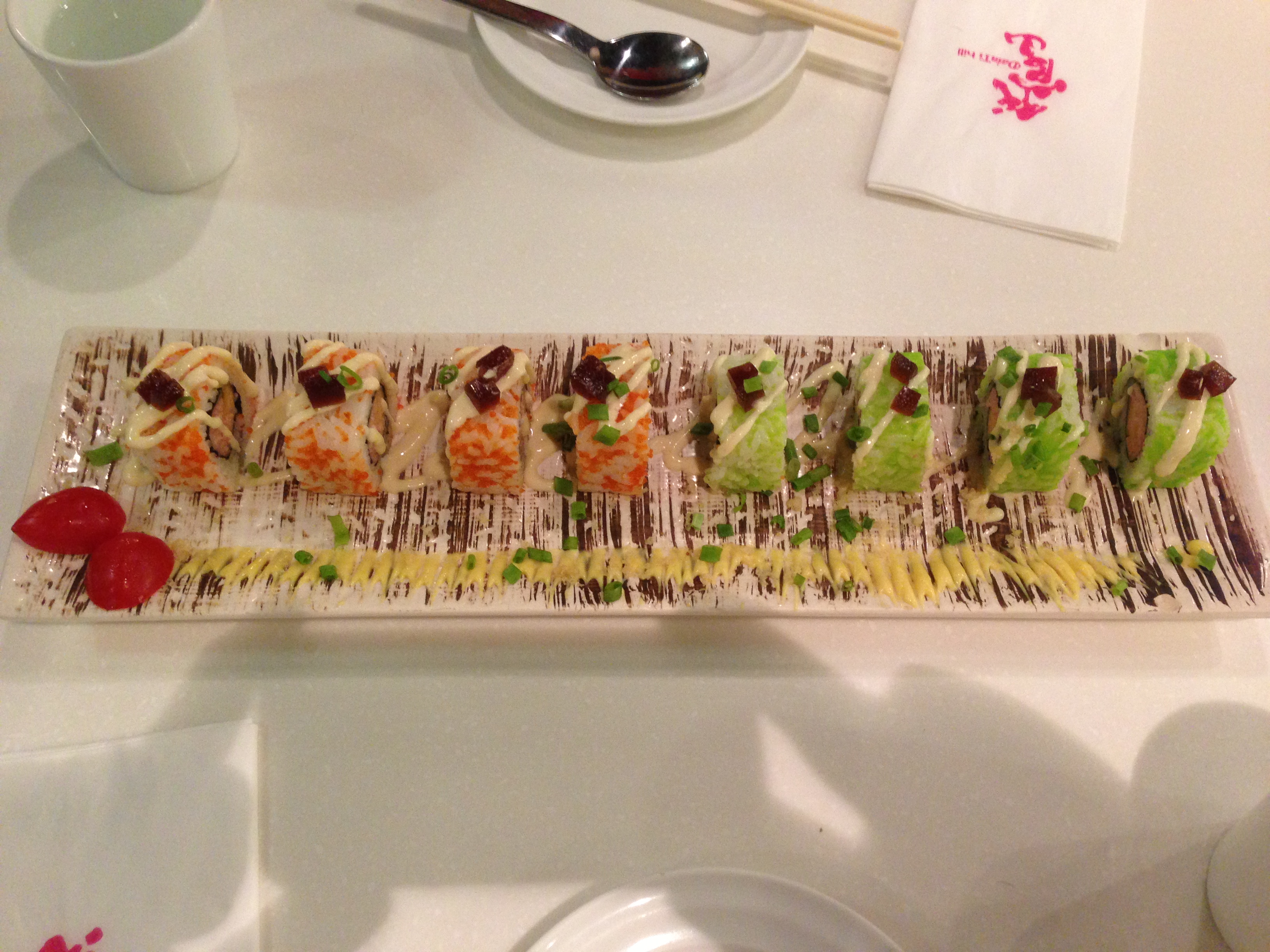 We started with some simple sushi. Nice taste, not overbearing. More art than real functionality though.