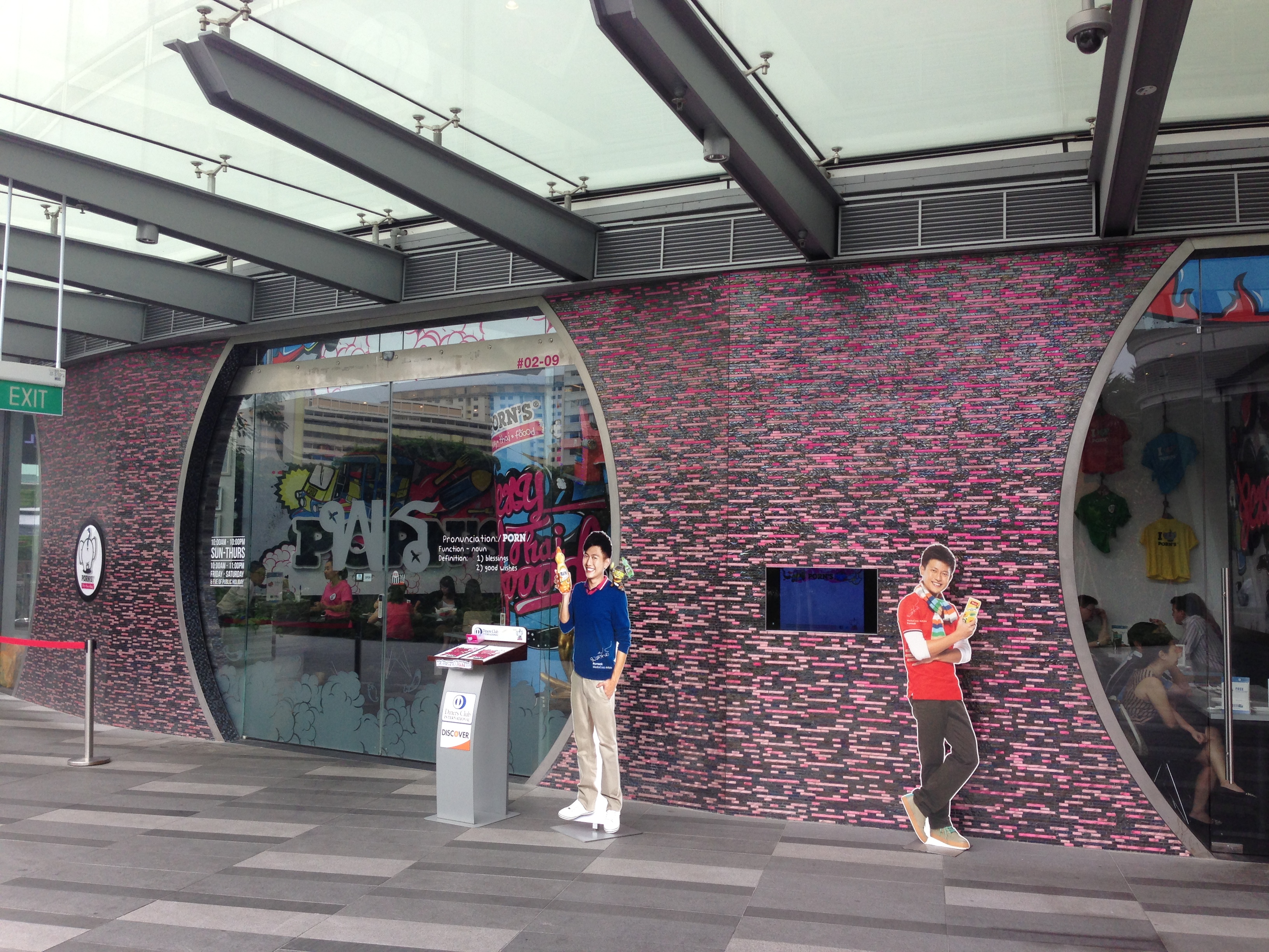 This outlet is located at Star Vista, very basic, but still quite nice. Complete with cutouts of Pornsak outside awaiting you!
