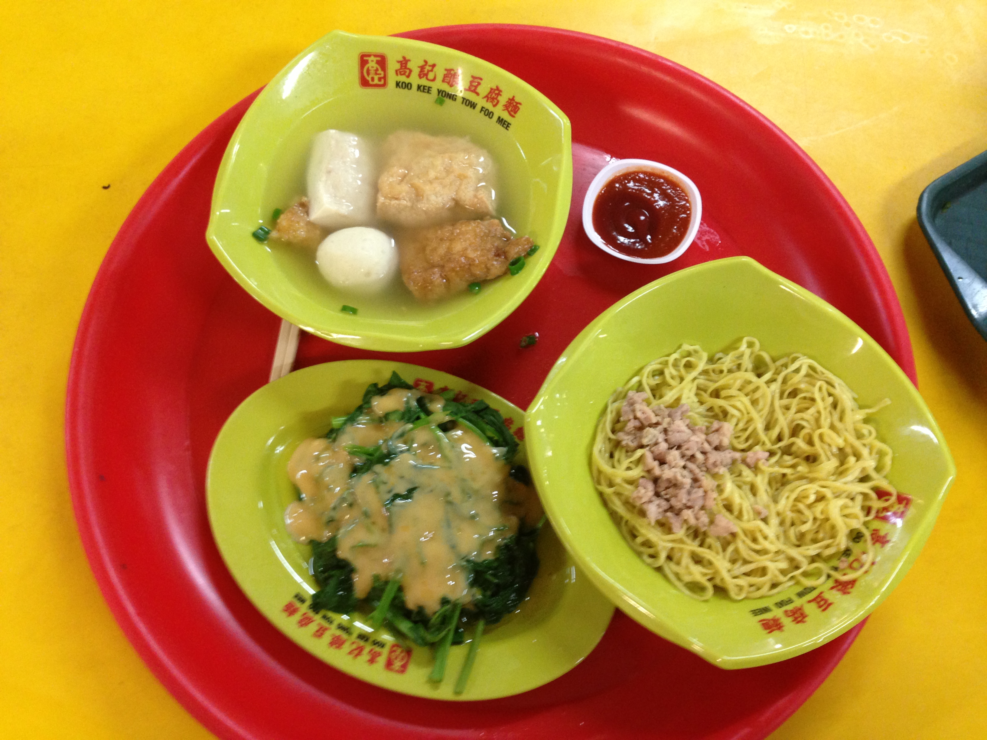 There is a set menu for their standard Yong Tau Foo set.  It’s noodles, dry, with some minced chicken, and then fishball, bean curd, fishcake, etc. plus some vegetables in a sesame sauce for $4.50.  Quite a nice deal.