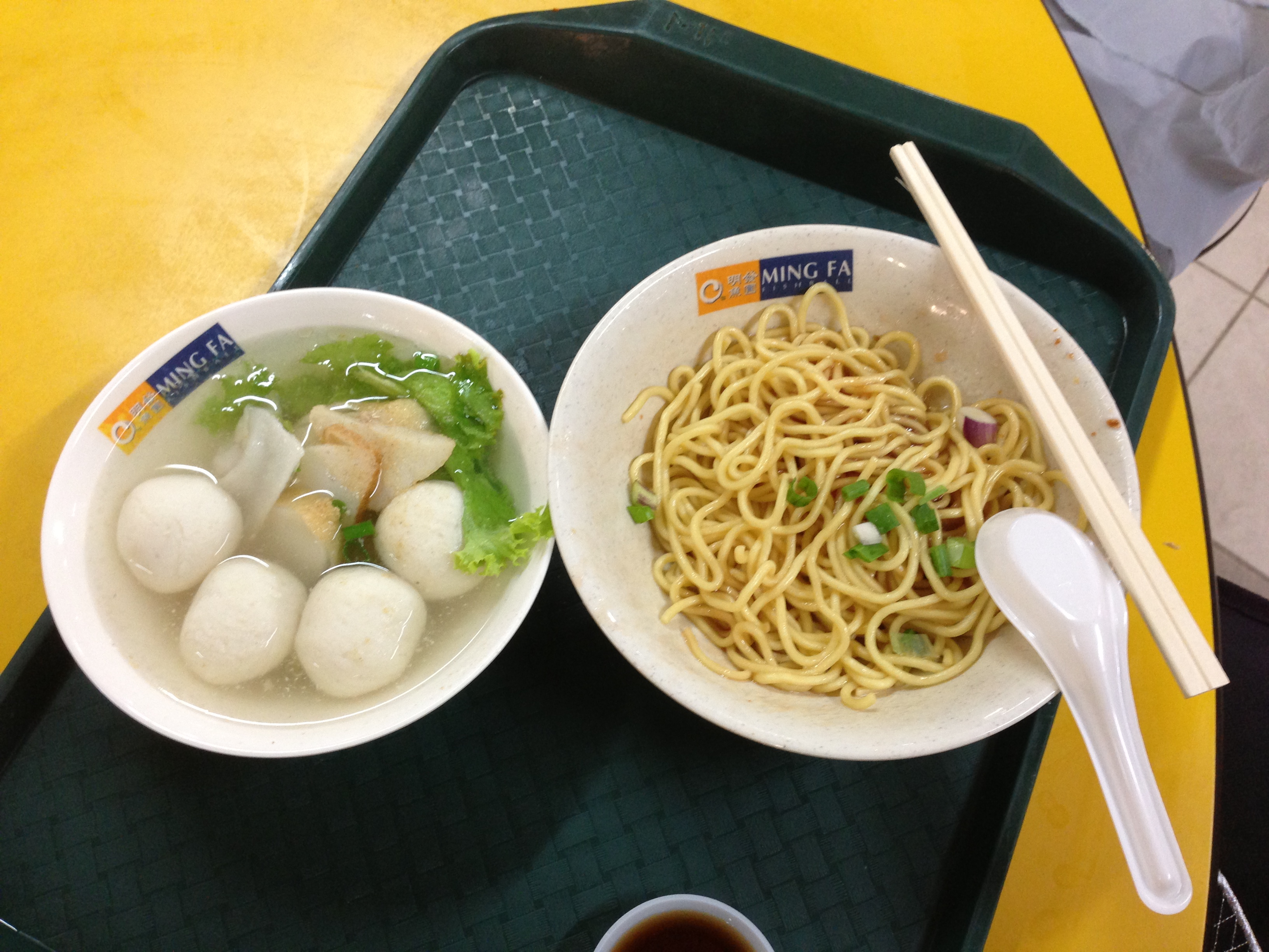 Lena likes regular mee, while I prefer mee pok with fishballs, but here it is with tomato ketchup, so it was quite nice.  And then the fishballs were nice and springy.  Quite flavorful.