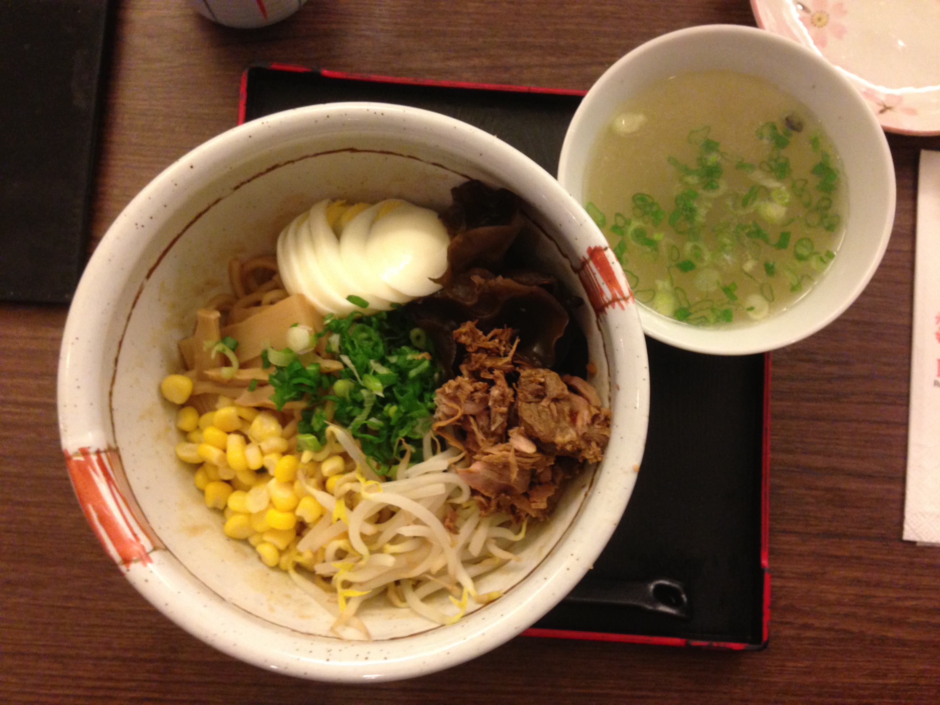 I went with the Chef’s Special Dry Ramen with some corn, mushrooms, beef and egg.  Quite nice, flavorful for sure.  I didn’t want the typical soupy ramen, so I gave this a try.  Not bad at all.