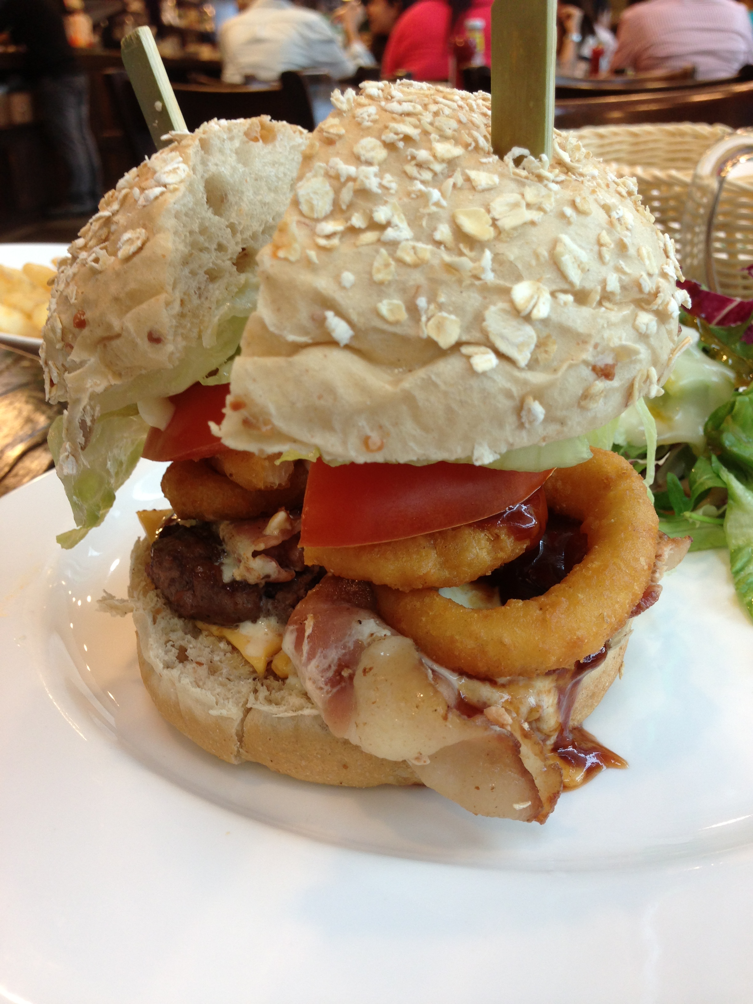 So, for the second half I took out the lettuce and tomato and ate it separately and then just ate the burger with the onion ring and sauce. Much better. I think sometimes too much side stuff on a burger is too much. You want to eat a burger, not a salad.