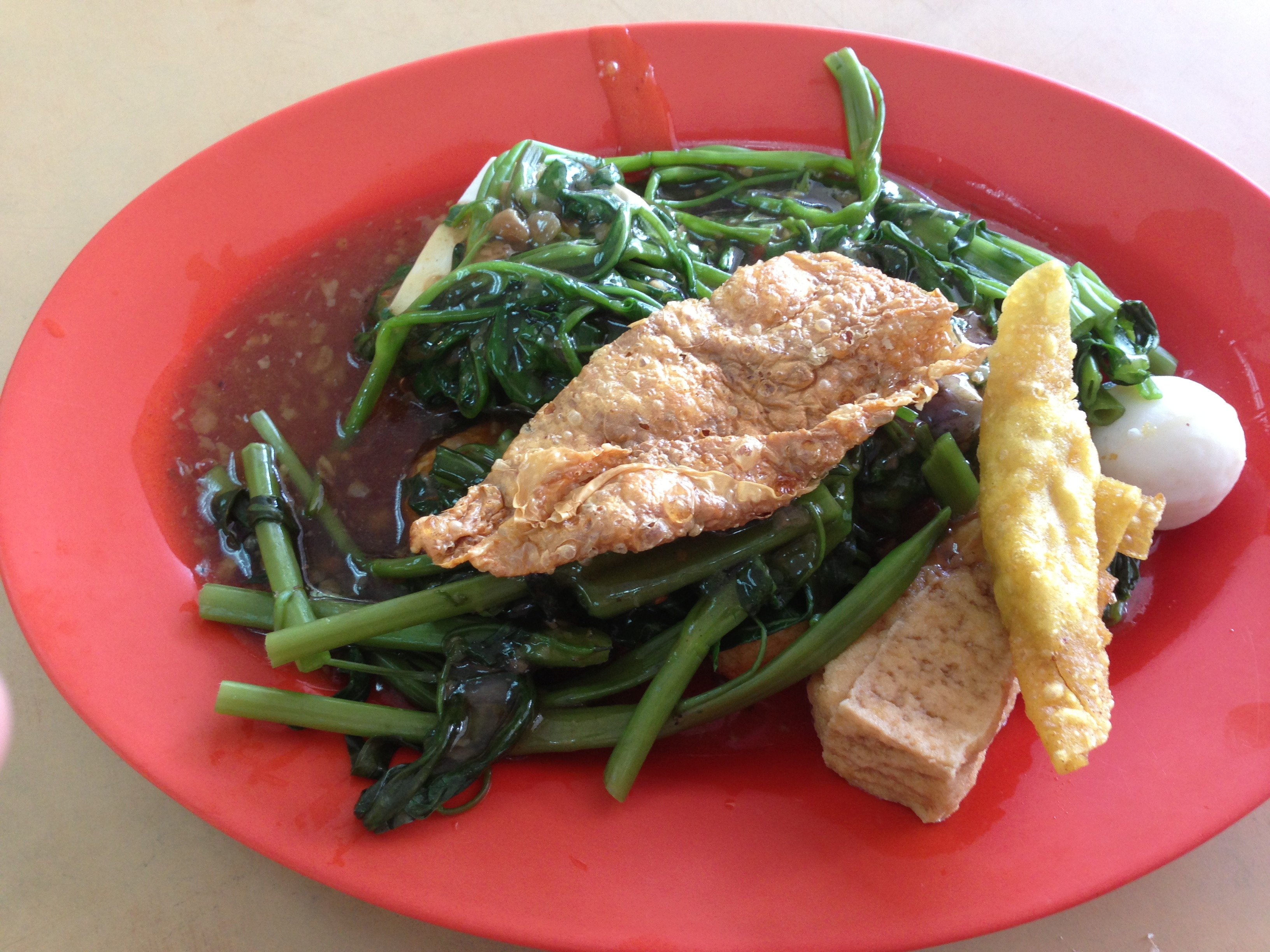 So this was for one person. Kang Kong, Tofu, Tofu Bok, Fishball, Fried Quail Egg, Crispy Bean Curd with filling, Fried Dumpling, Fish Paste in Bitter Melon, Eggplant, etc. all smothered in a sweet garlicky sauce, and then served with rice. Very filling and hearty, and the taste, pretty good.