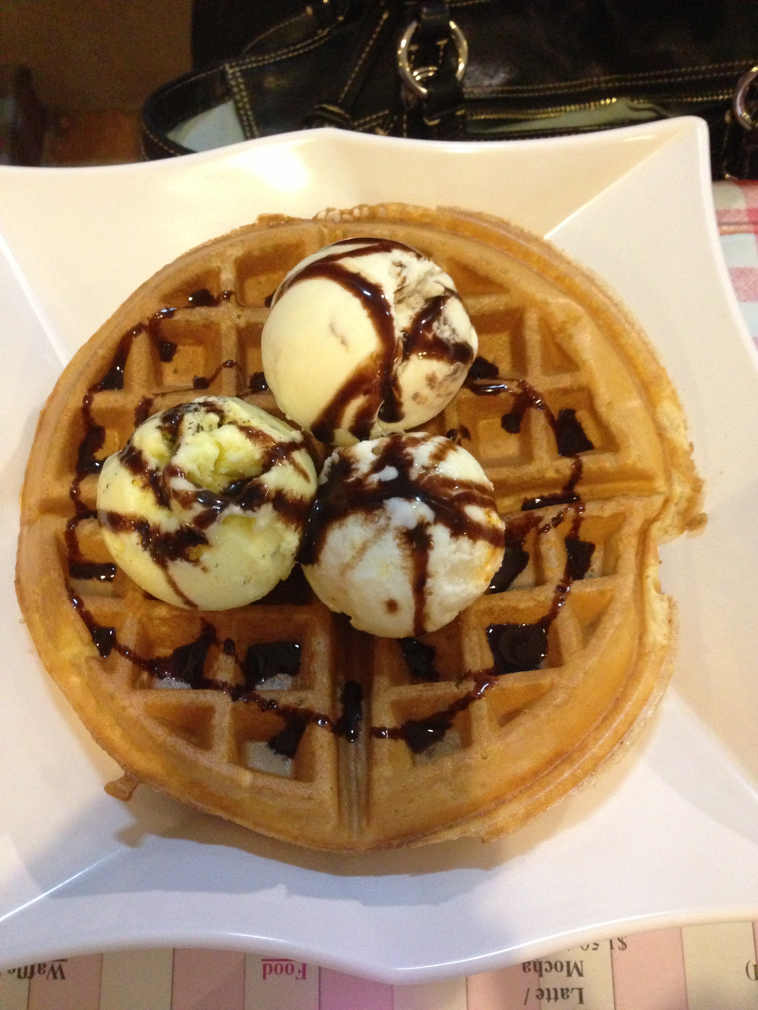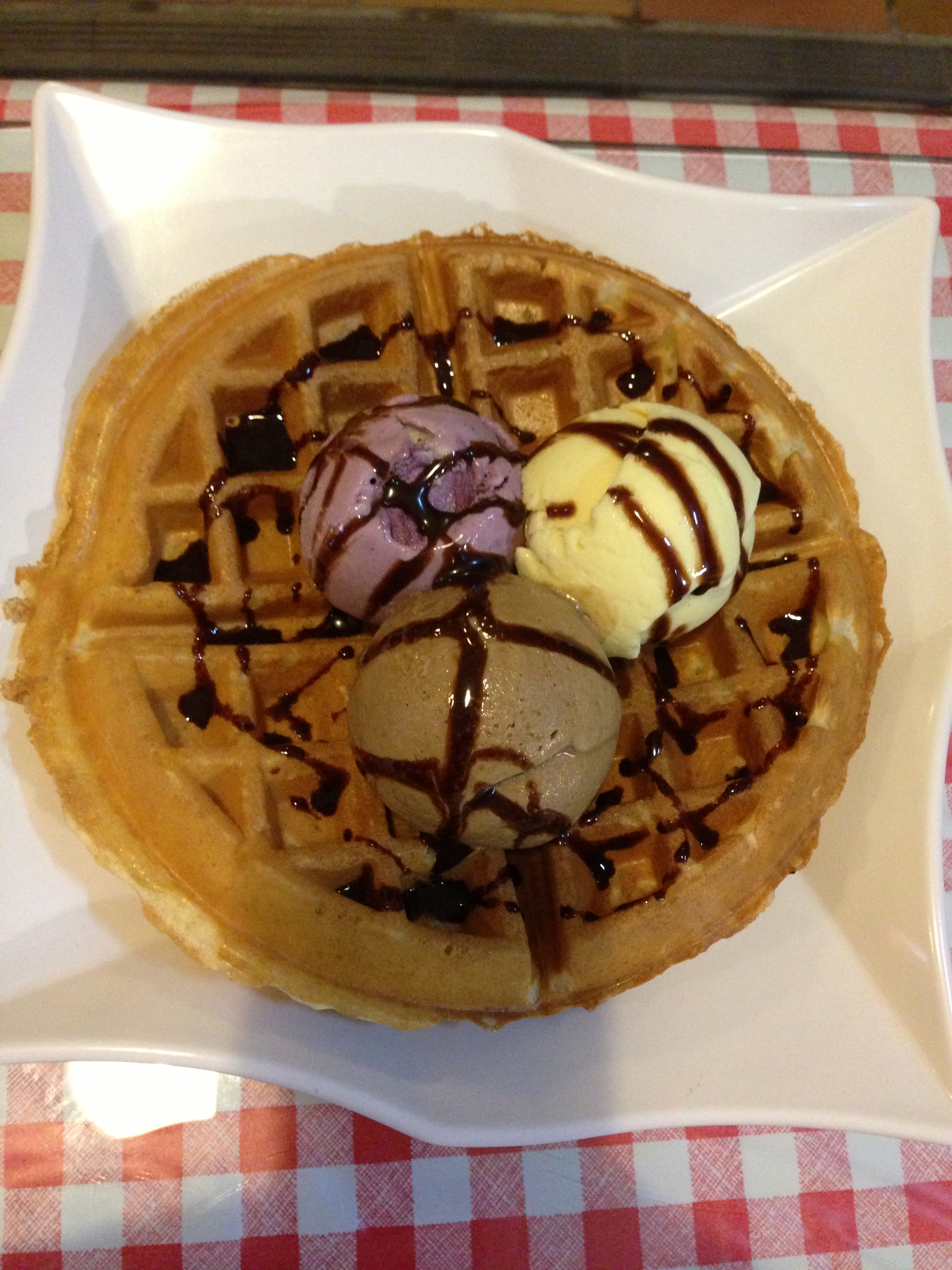 Lena went with Cookies and Cream, Cheesecake and Passion Fruit Sorbet Waffle.