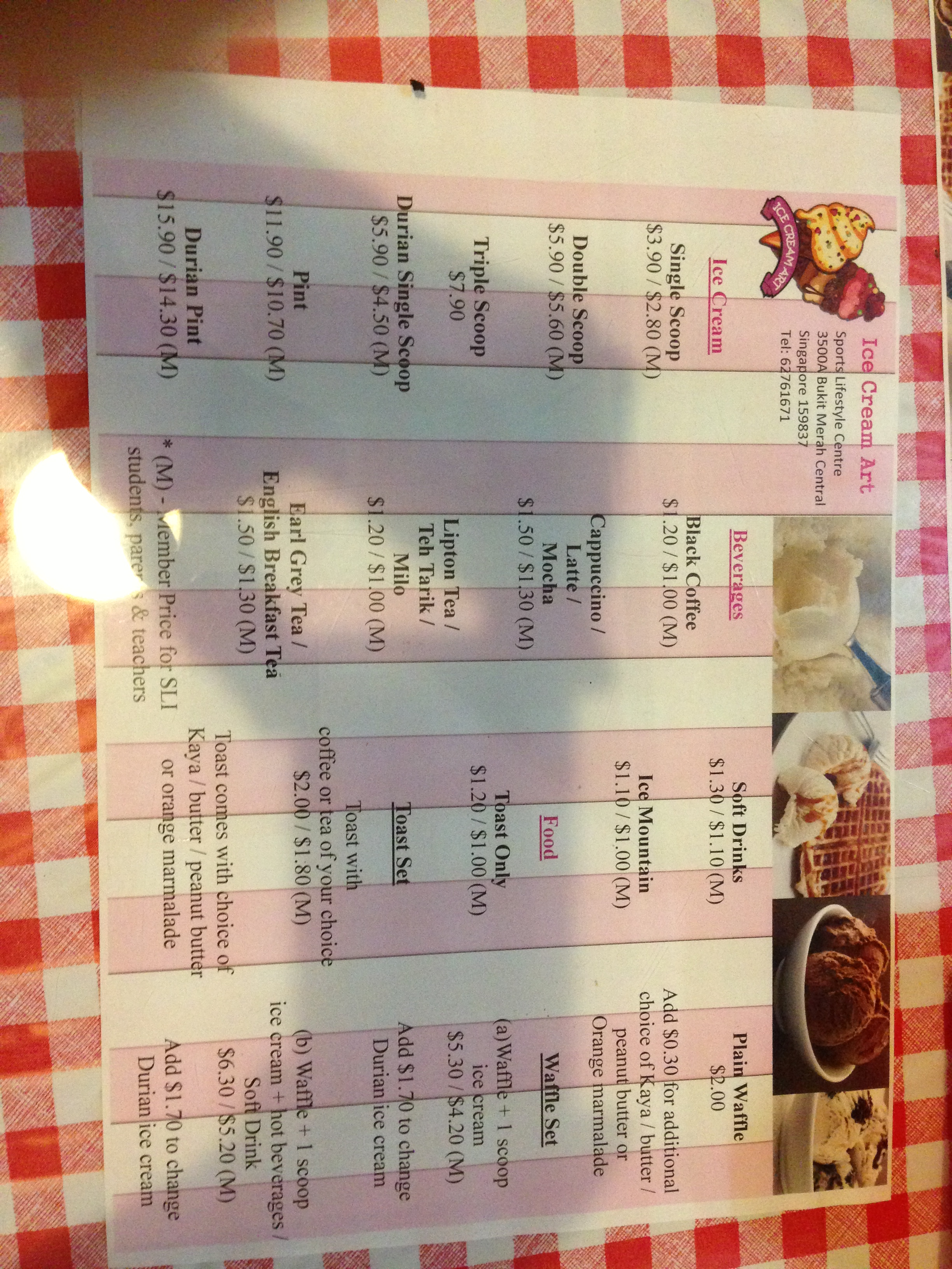 Here is the menu in it’s entirety. Not cheap. But then again, Ice Cream is not cheap in Singapore except at the corner vendors, and I can’t understand why…