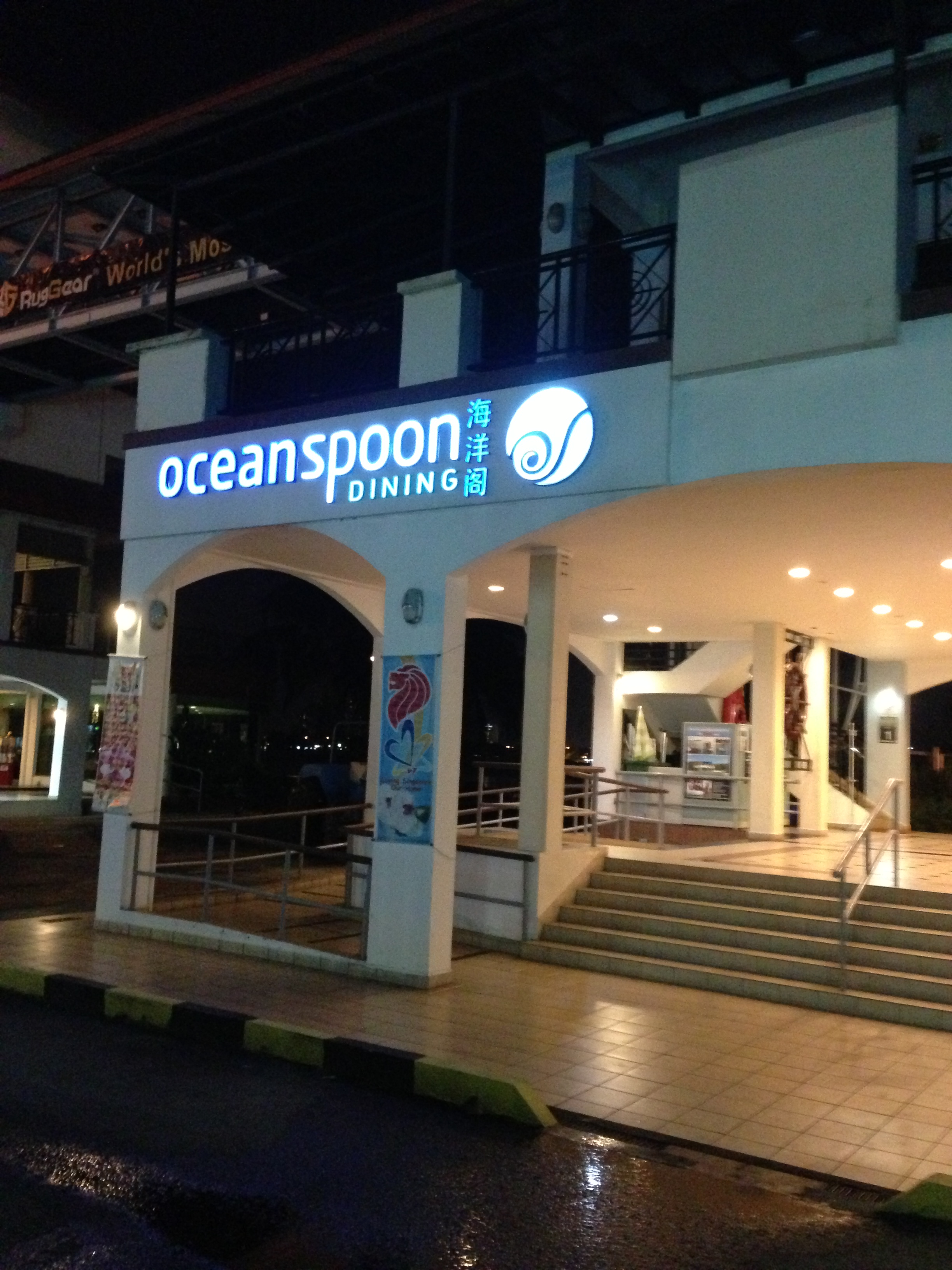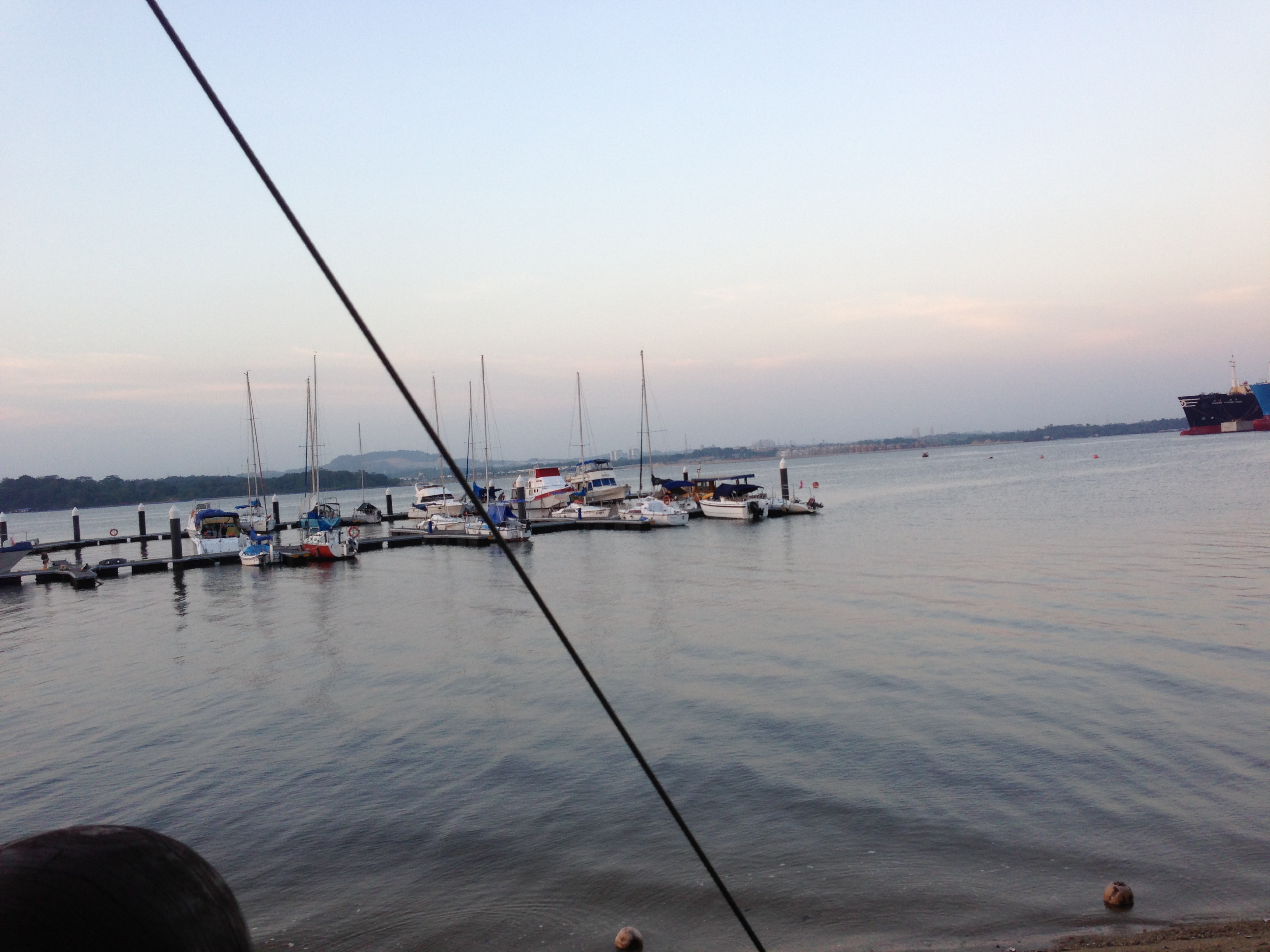 We were seated outdoors, but the water, with a nice view of the boats and the Strait, and Johor Bahru in the background.