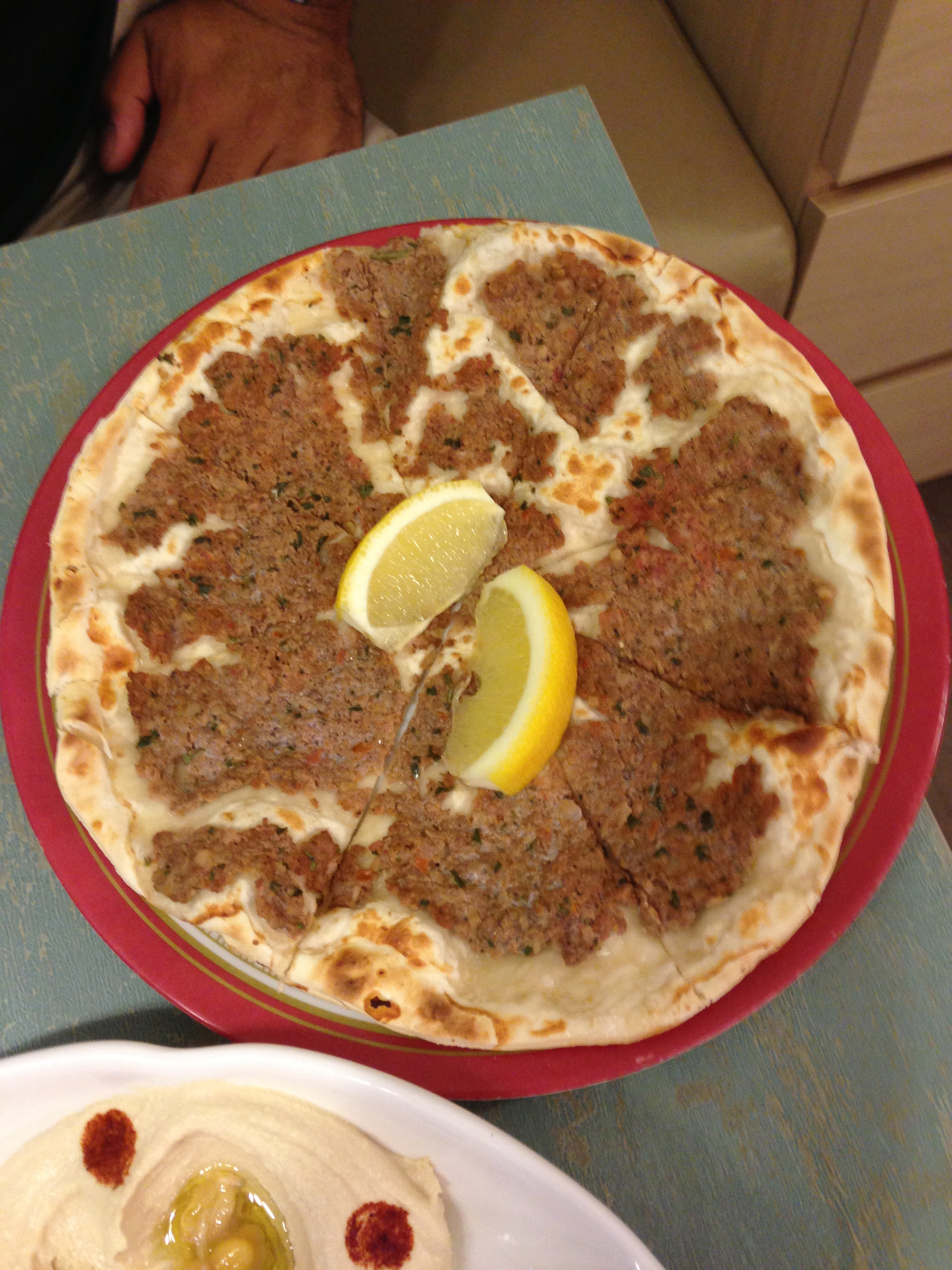 Our first one was Lahim Bel AJeen, which is minced lamb, tomato, onion and pine nuts, baked in a wood fired oven.