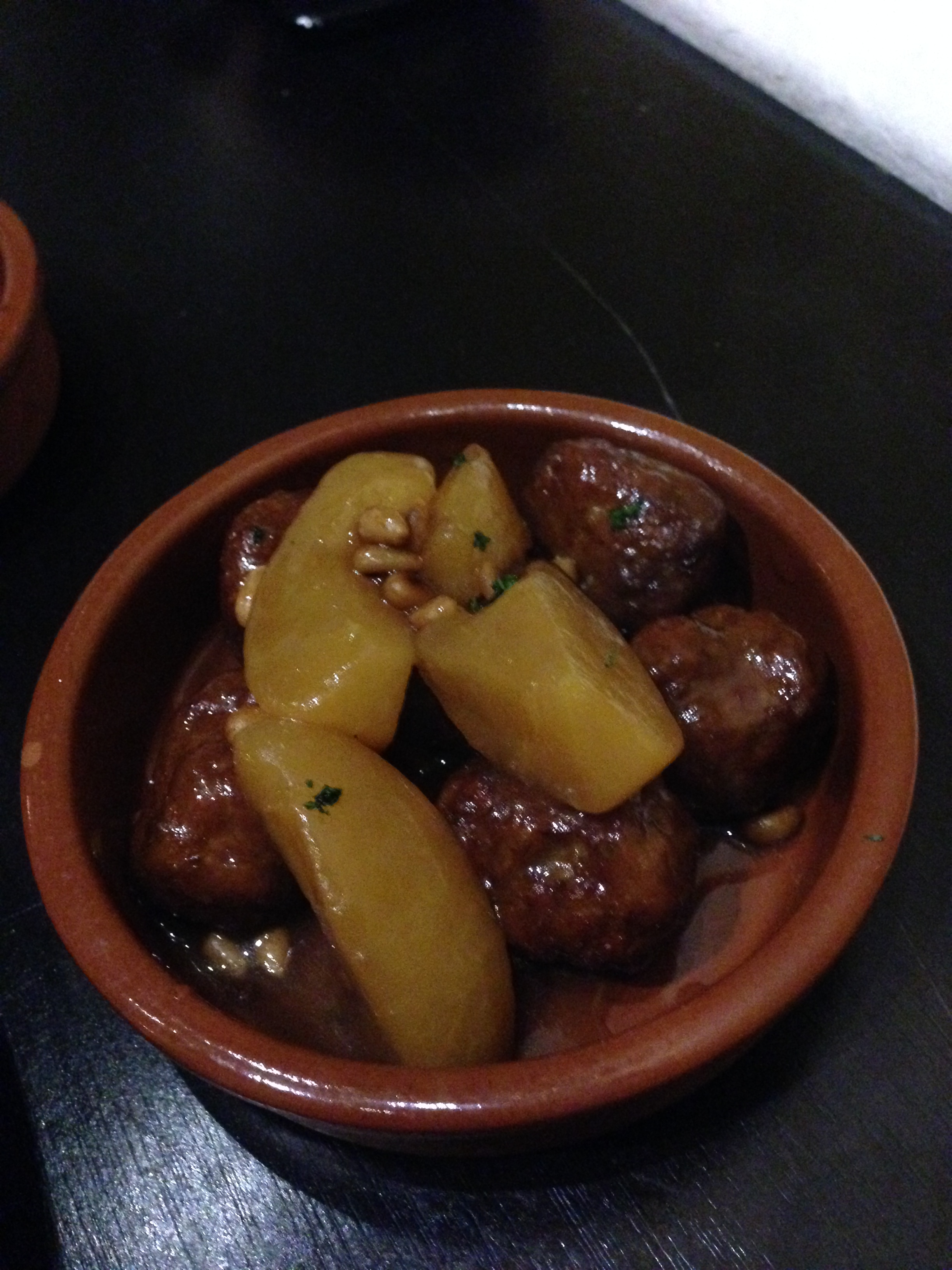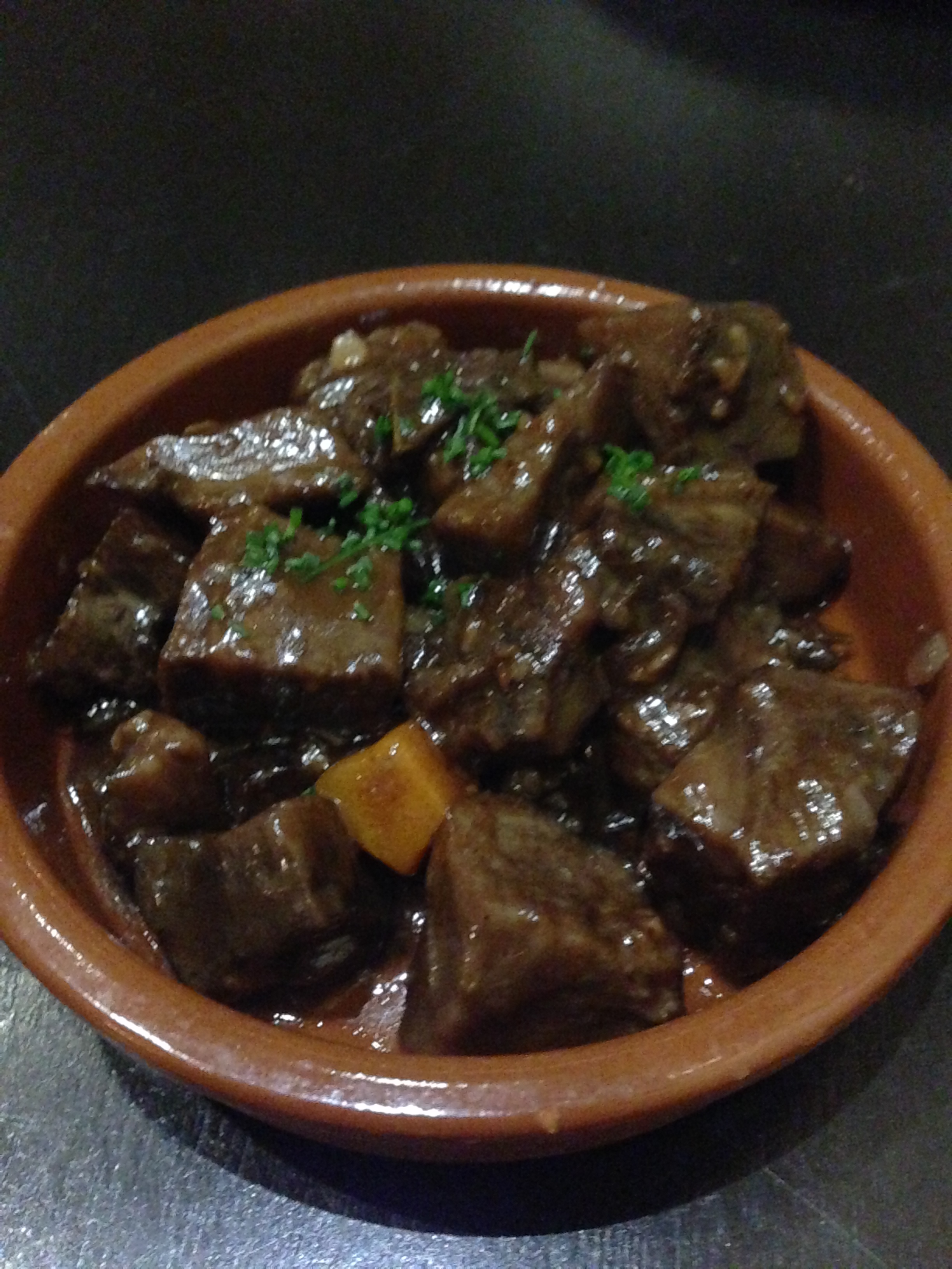Our final tapas of the evening was a nice Berenjenas al Horno, Eggplant baked in a casserole (S$10). Now when it came out, we thought it was huge. A big pot and when we lifted it, it was more like a soup. There was a whole eggplant inside!