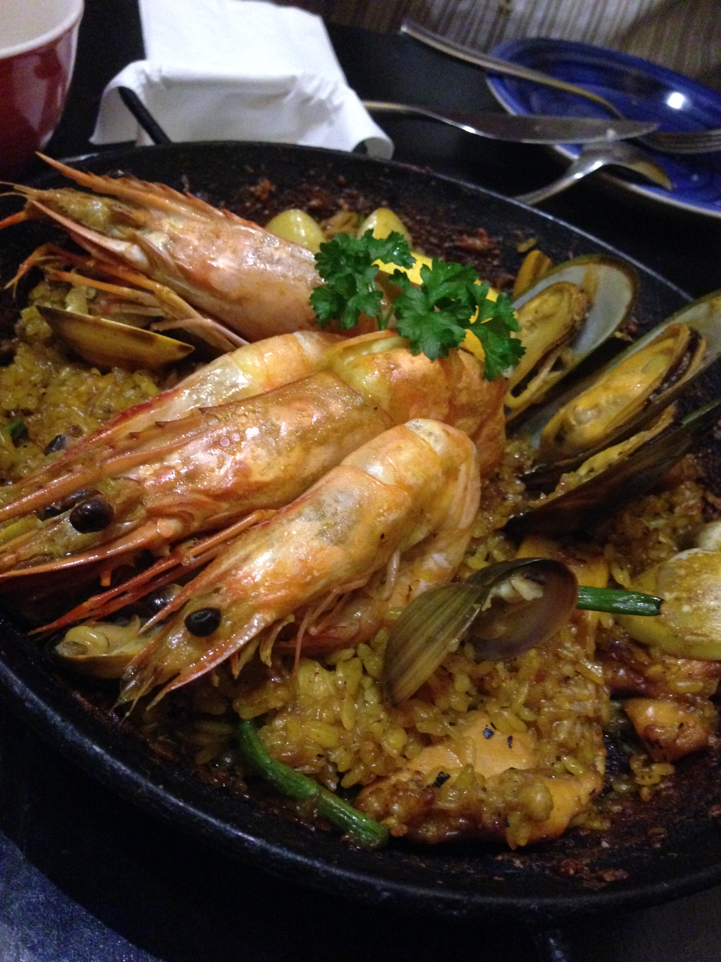 To close out our evening, the Paella. We ordered the house special, a small one for S$48. It contains seafood of a high quality. And you get your choice of al dente rice, or normal rice. We went with normal, as we both like a softer touch to our rice. And a chance to let the broth soak in.