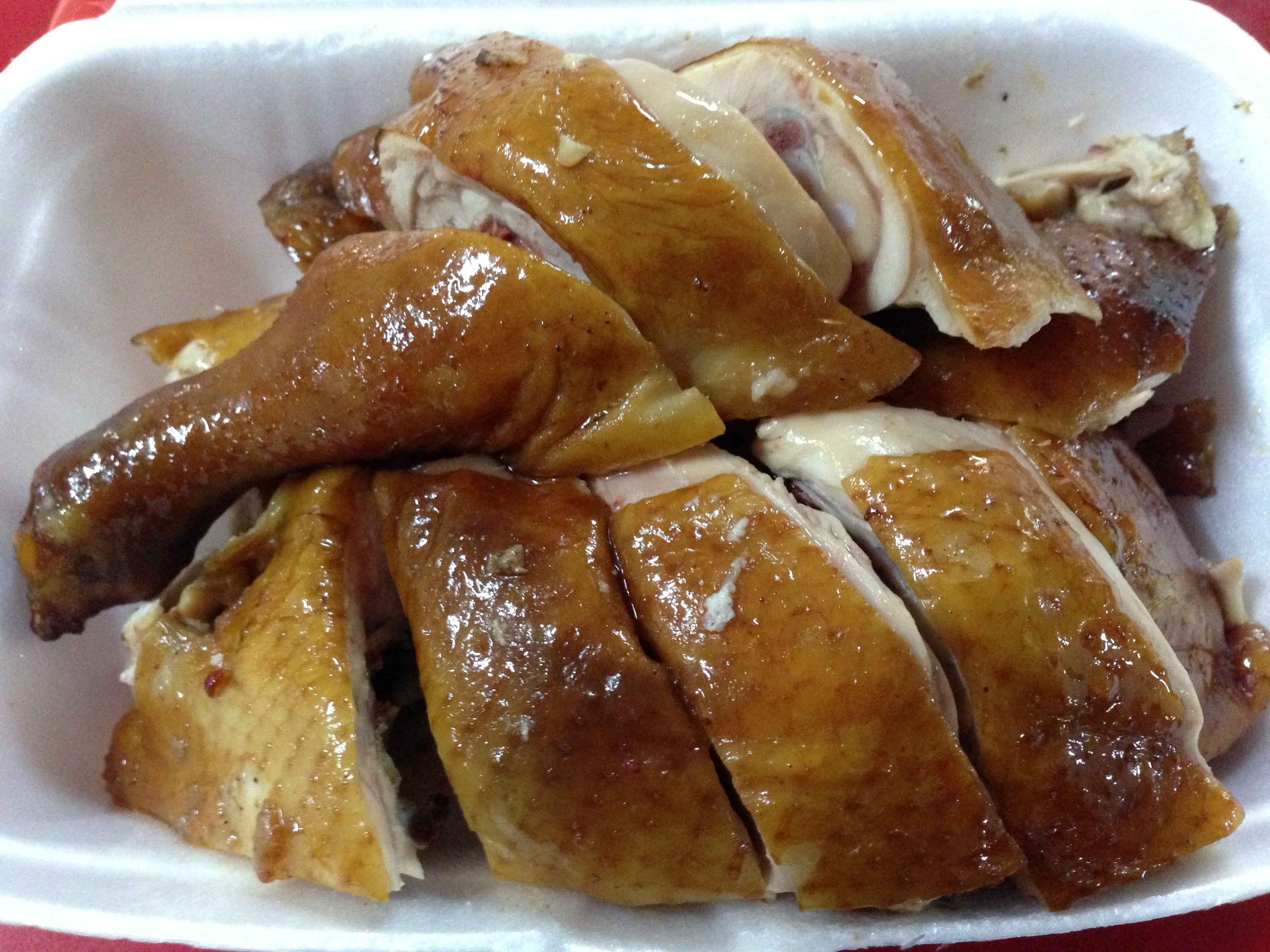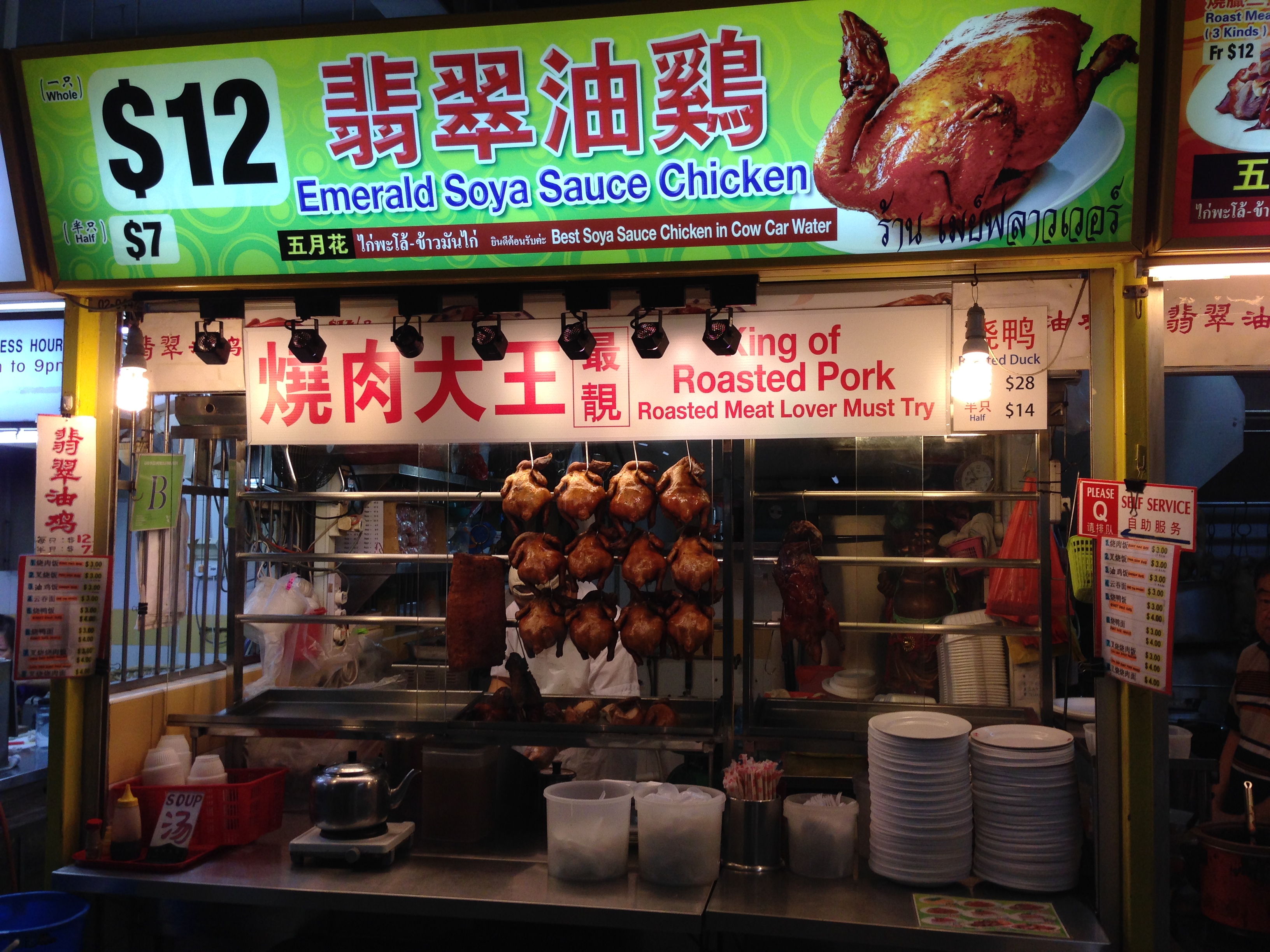 Now they claim to be the King of Roasted Pork, but I was after the Soya Sauce Chicken. Half a chicken for S$7, sold.
