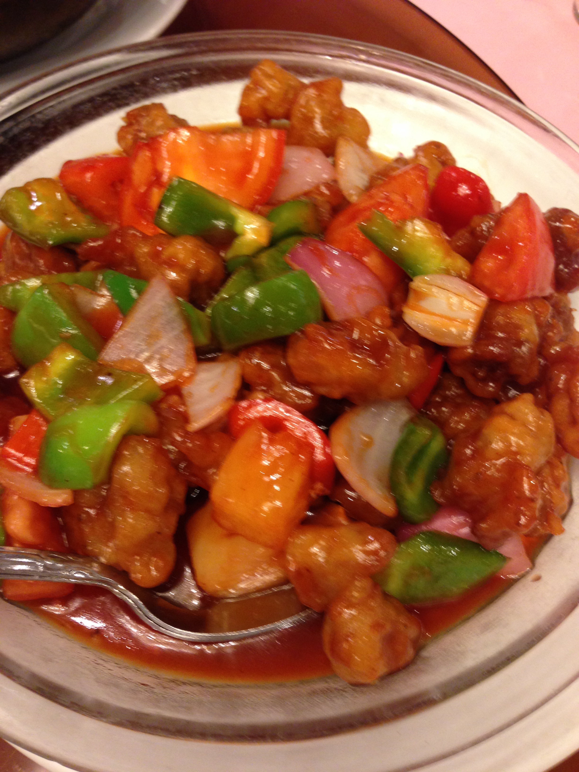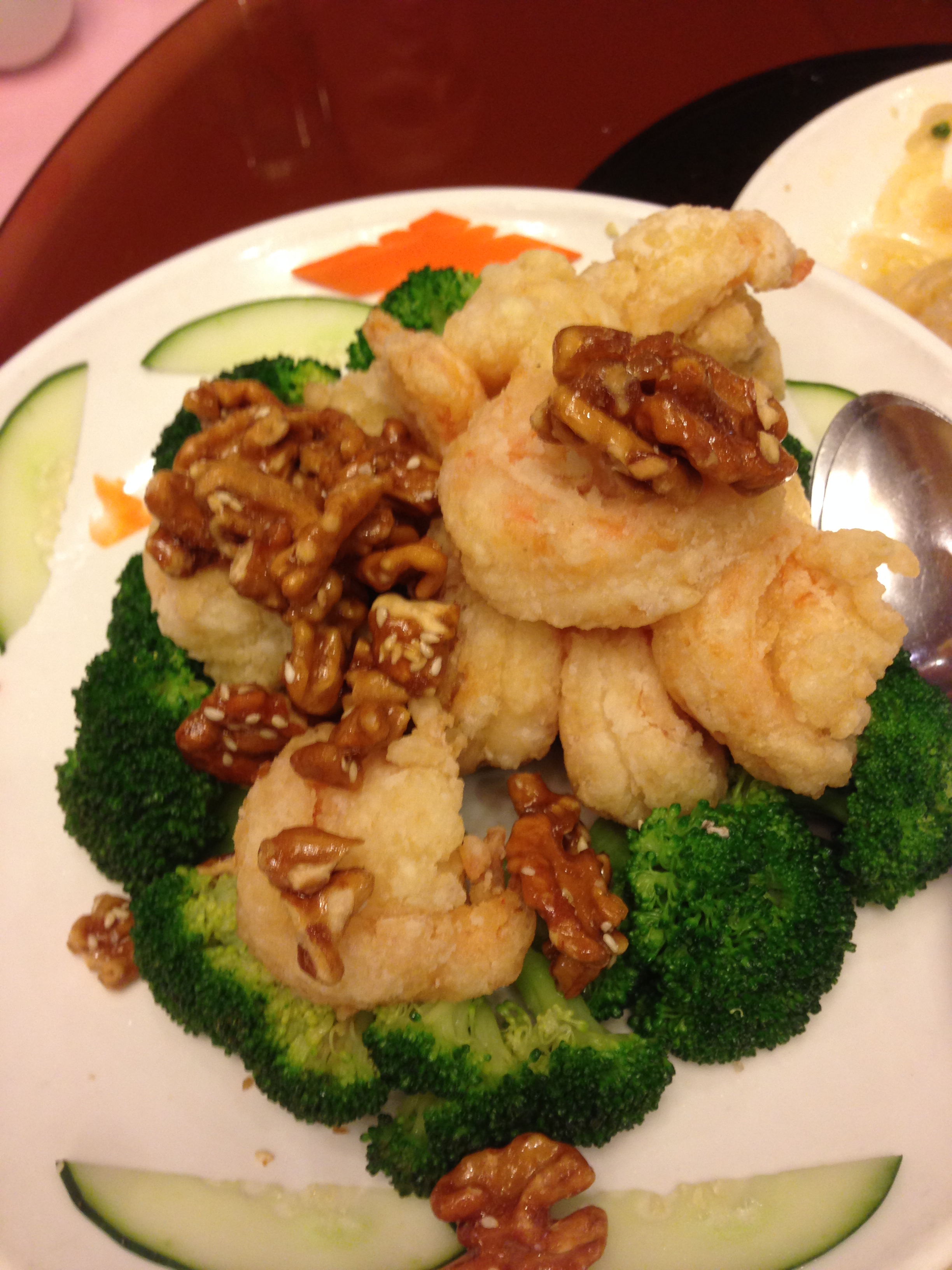 Shrimp with Honey Walnuts. It’s missing the mayonnaise sauce, but that was on the side. So I dipped instead of having it on there, as some of us can’t take that sauce. Nice and crisp, the walnuts nice and sweet and crunchy. A perfect dish.