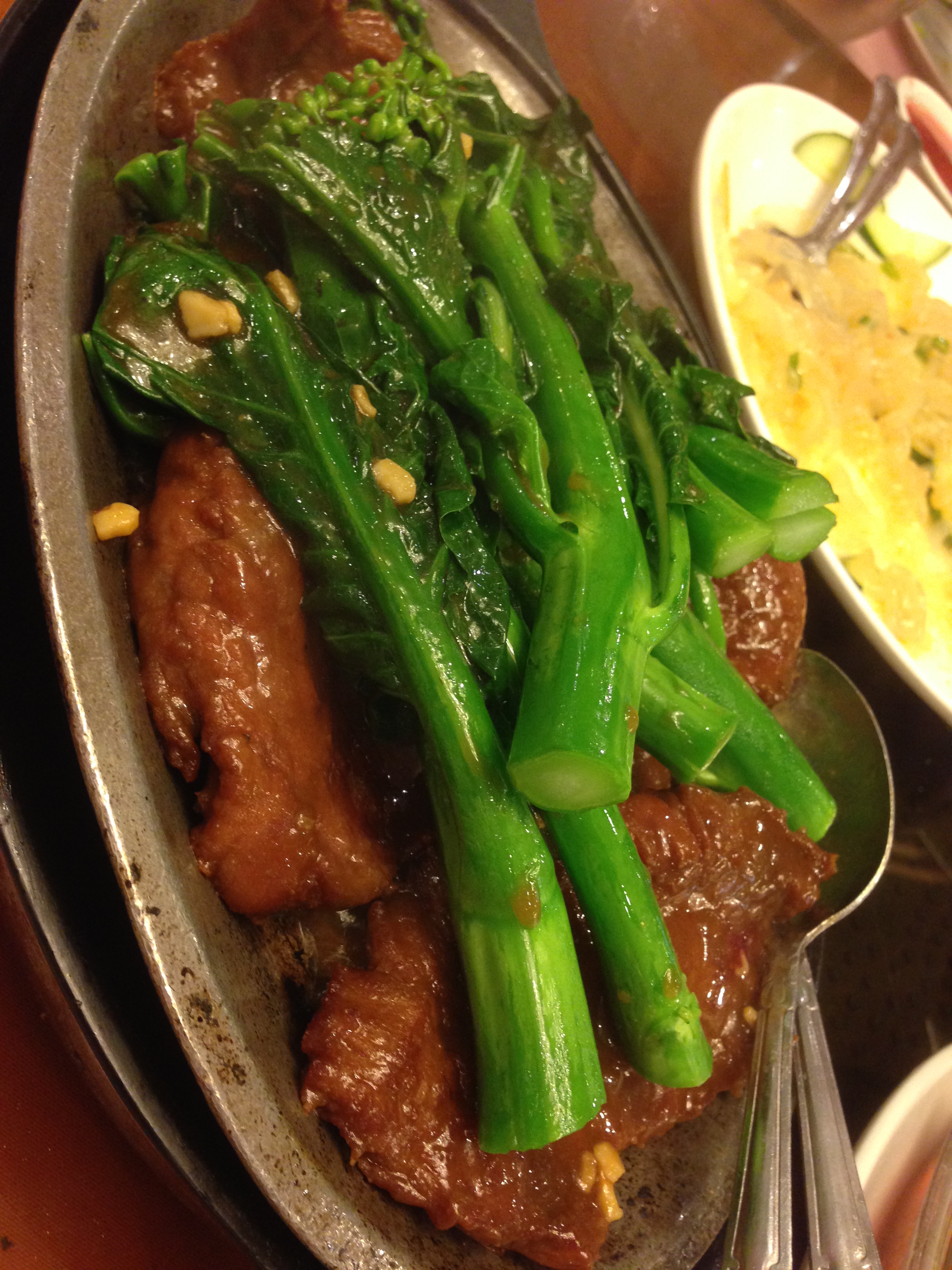 Tom and TC’s favorite. Beef Filets on a sizzling hot plate with Kai Lan. The beef is so tender and just nice.