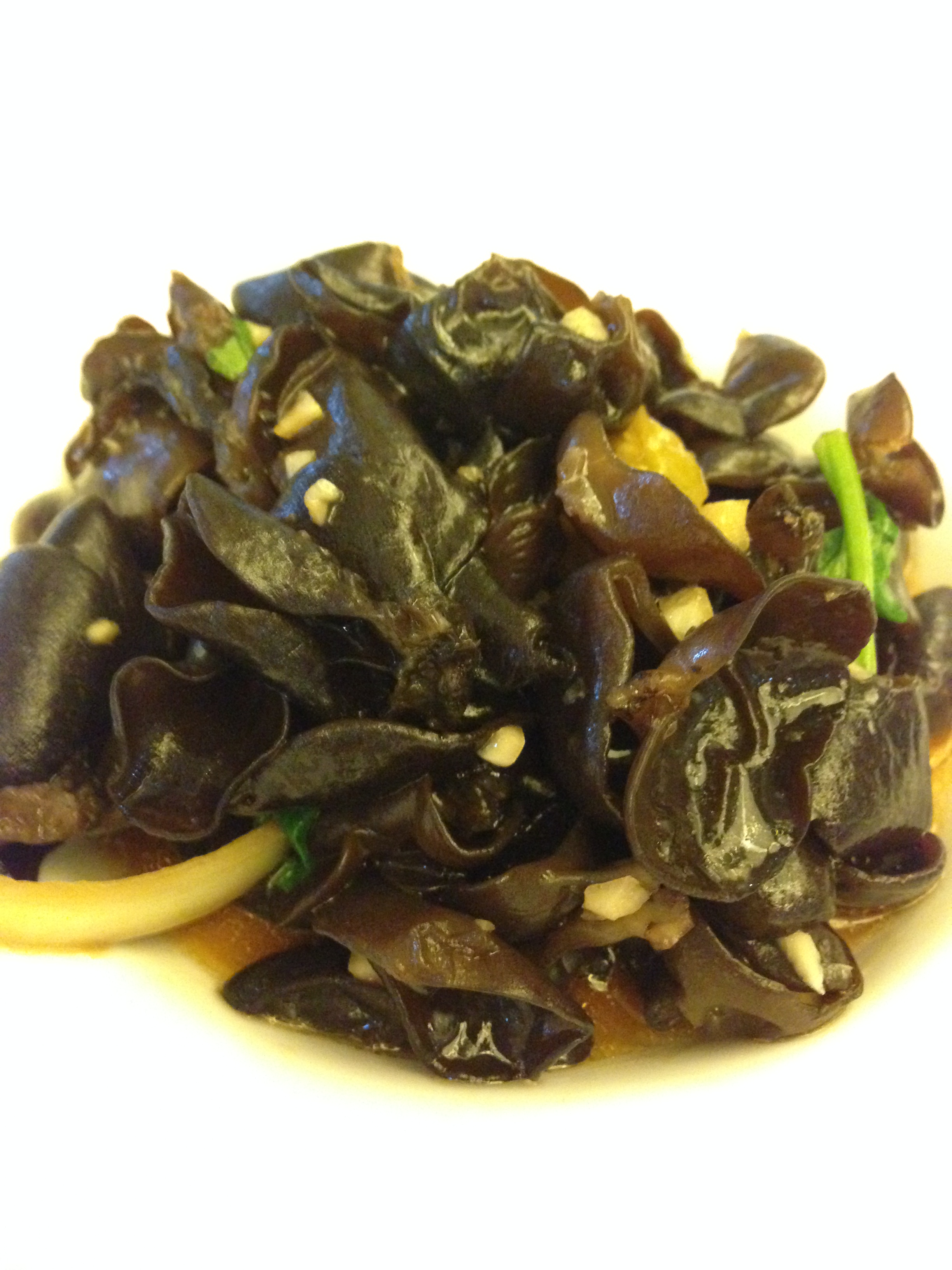 Wood ear fungus with garlic, a cold dish. Crunchy and not bad at all.
