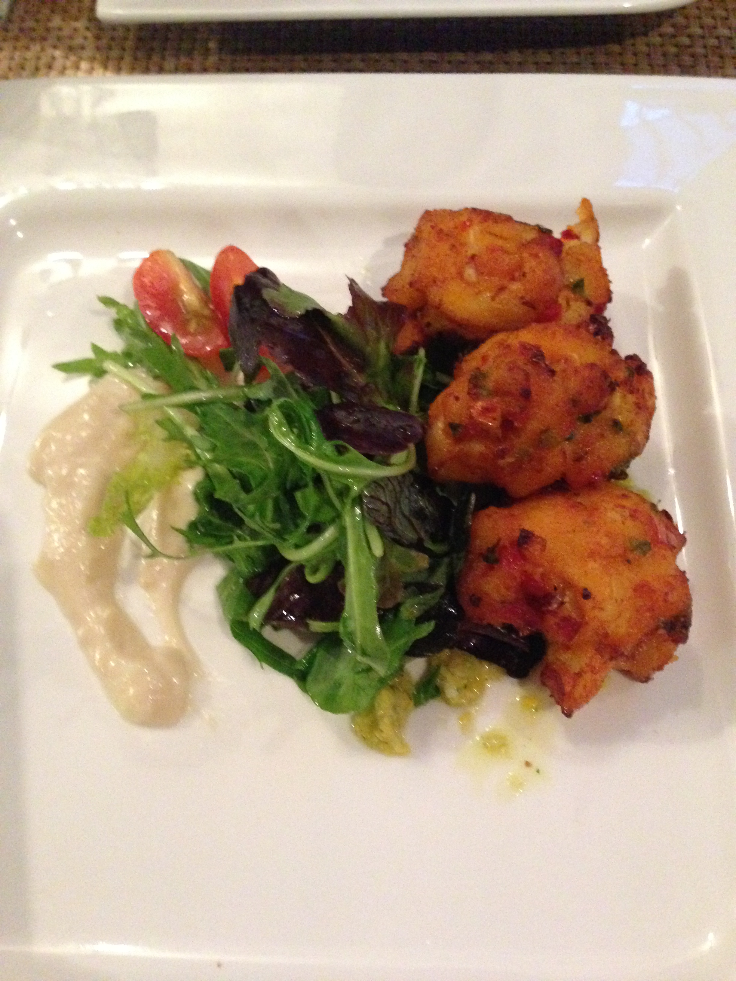 We started with some Caribbean Fish Cakes. What makes them Caribbean? Not sure actually. Nonetheless, quite tasty and light and refreshing to start out with.