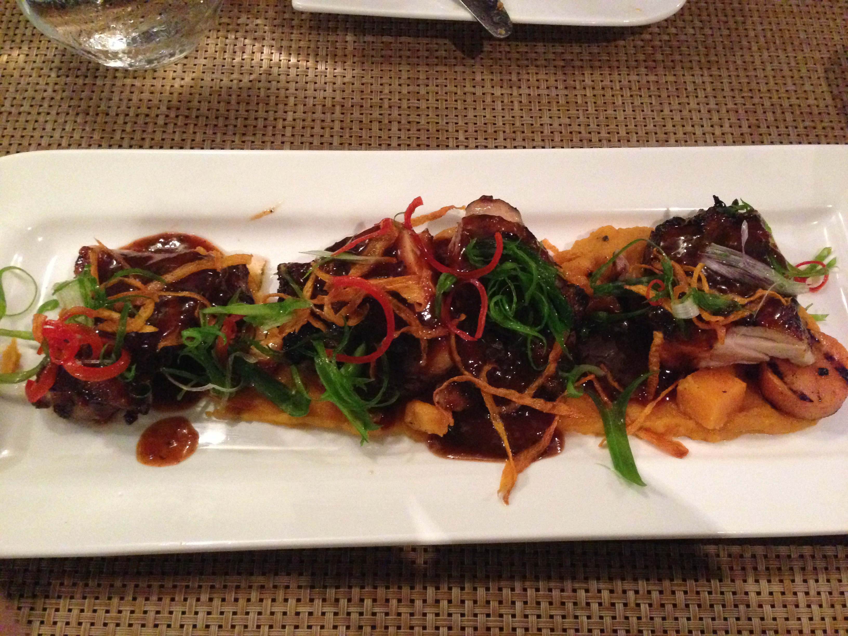 Jerk Chicken. When you ask me about Caribbean food, I think Jerk. So we went for this which was a nice glaze with sweet potato puree.