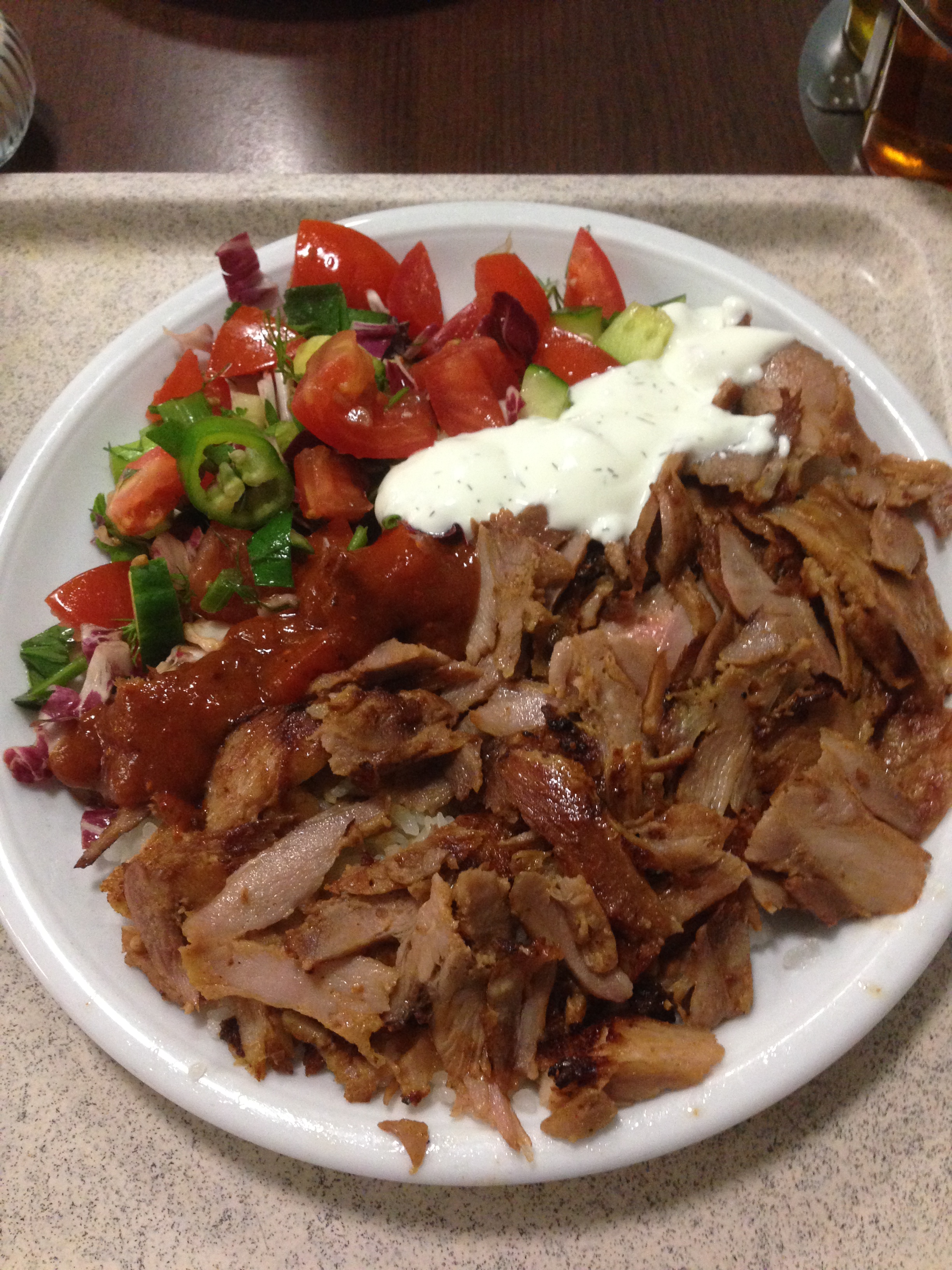 I went for a lovely Donner Platter, with the Kebab on rice and a nice salad to go with it. Quite good for simple, fast food type fare.