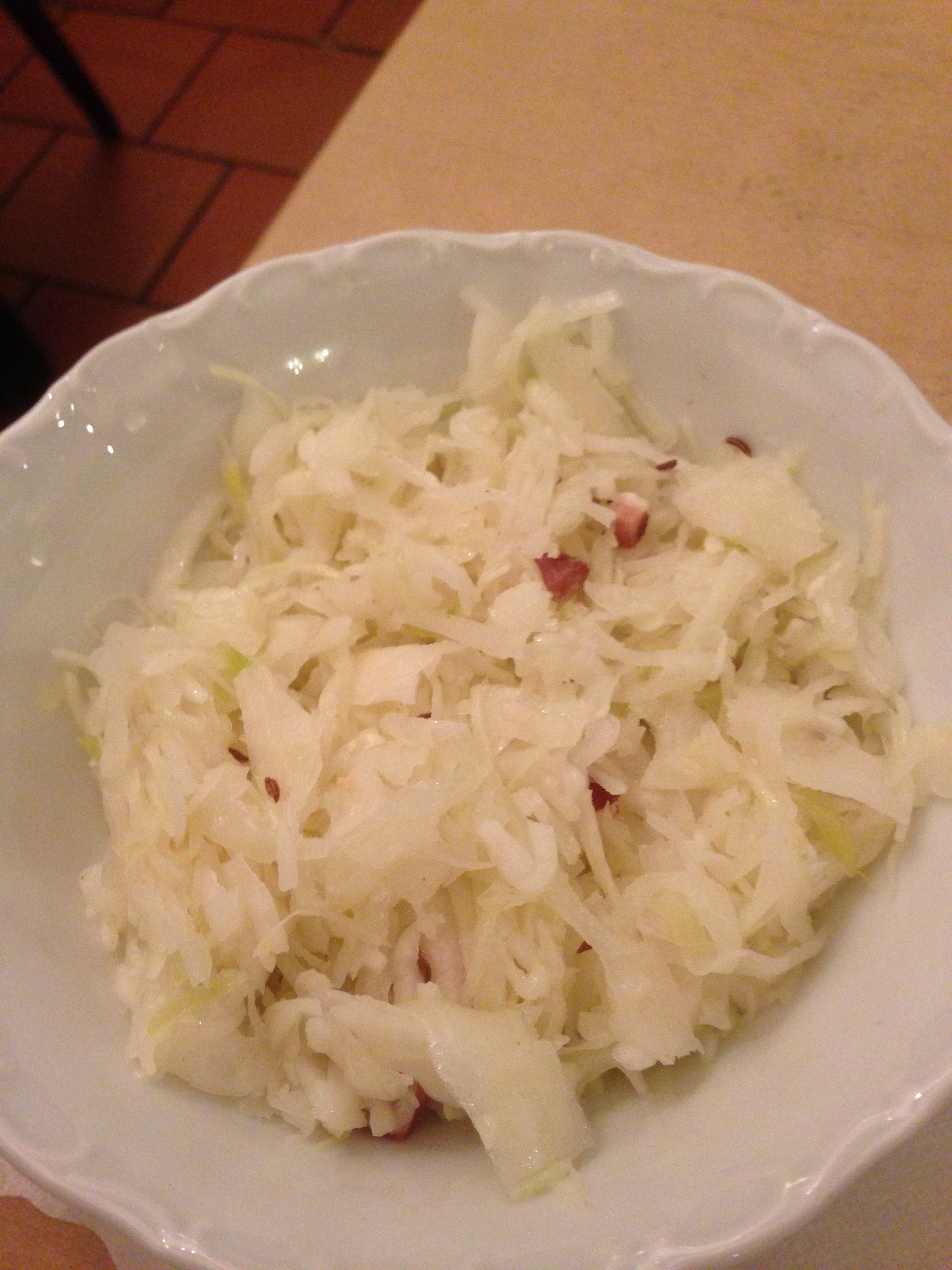 Here is the side, which is a lovely white cabbage, lightly pickled with some bacon.