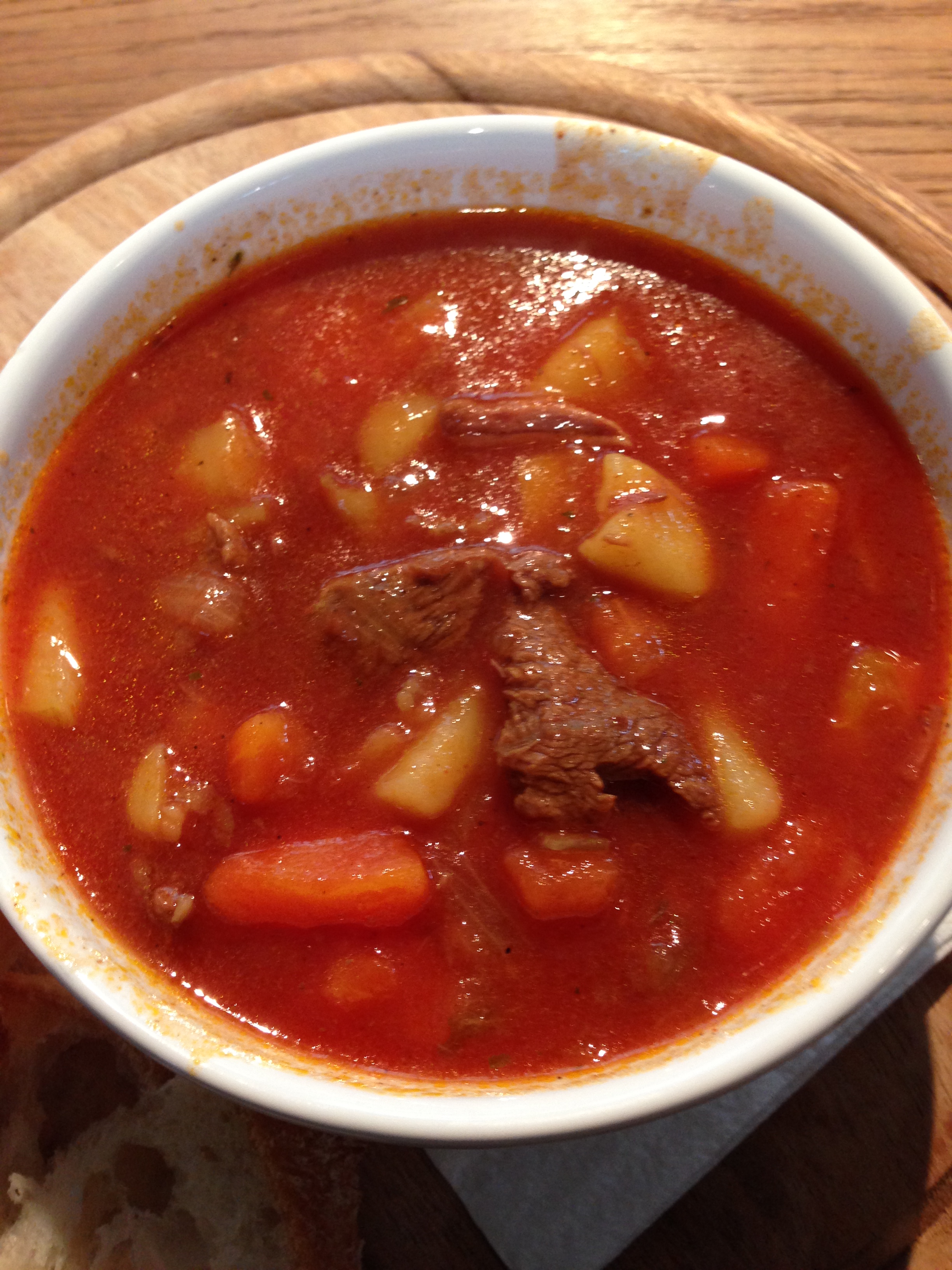 The Goulash itself comes in a nice bowl with some crusty bread.