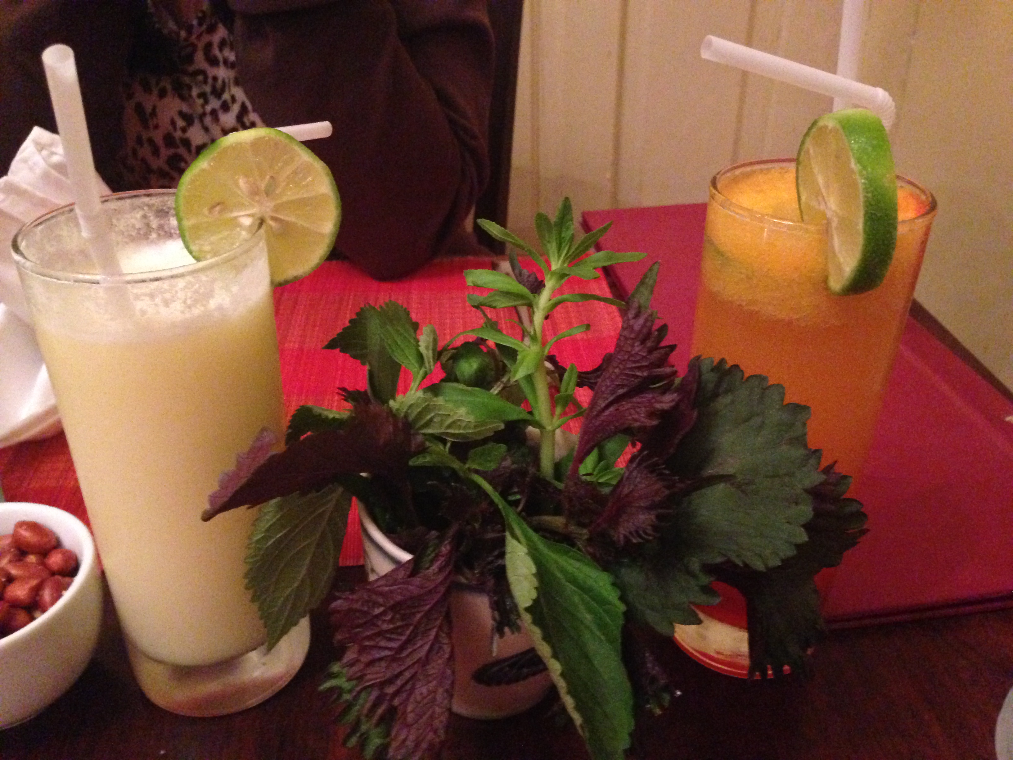 We went and sat inside, upstairs on the second level. It was an old colonial type building, not bad, and the seating was fine. We were presented immediately with menus and a bowl of herbs.