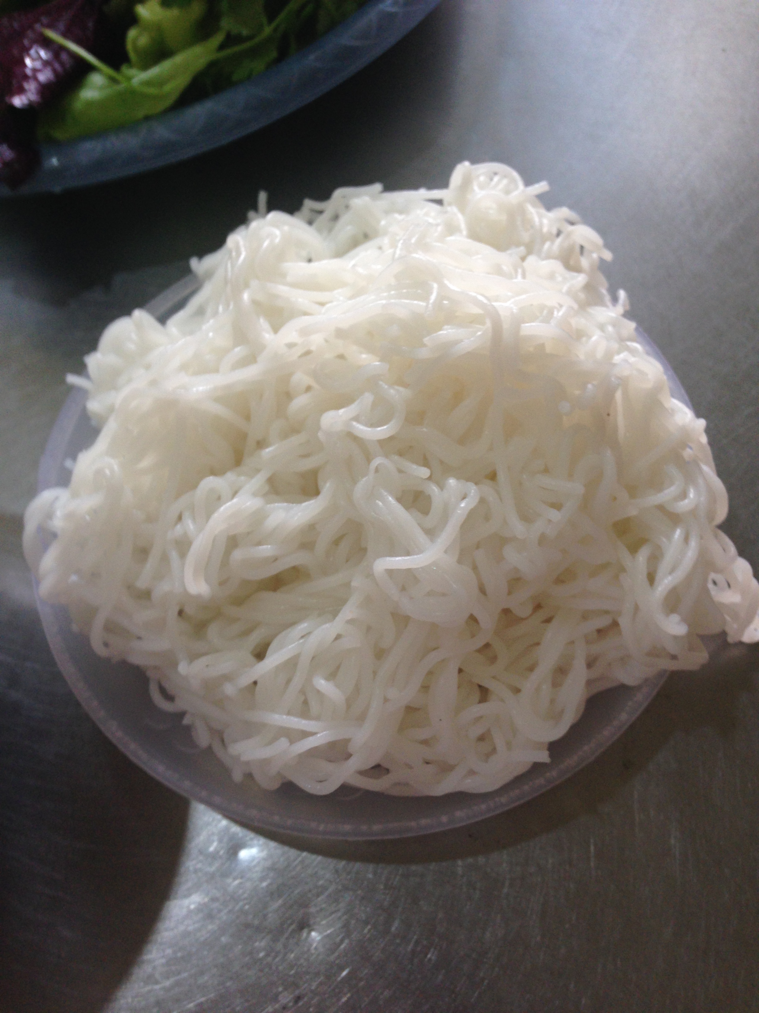 We went in a grabbed a seat and within one minute, food arrived. First off they put down a plate of Nem Cua Bể, Fried Rice Paper Wrappers with a Crab filling. This one was crisp and full of shredded crab. This is a winner.