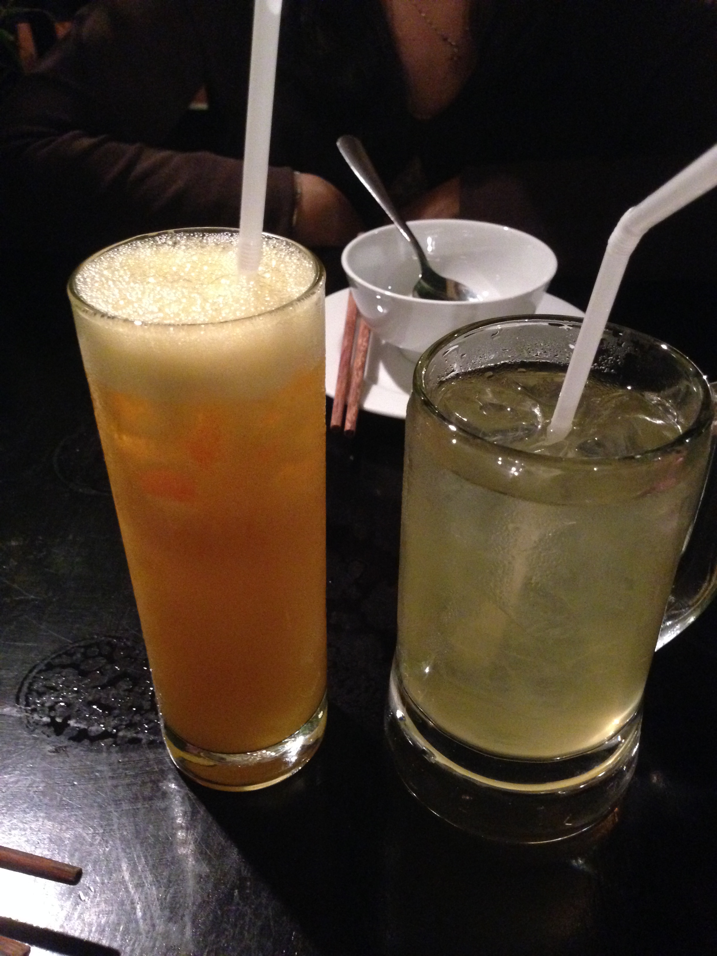 When we arrived, we had our game plan in mind. We were going to order Hanoi delicacies that we knew we would be unable to try on our visit. These are dishes that we wanted to try, but knew we wouldn’t be able to get to those stalls or restaurants in our visit. This made this a one-stop shop deal for us. We started with some drinks, Lotus Tea on the right and a nice Passion Fruit Citrus Juice on the left.