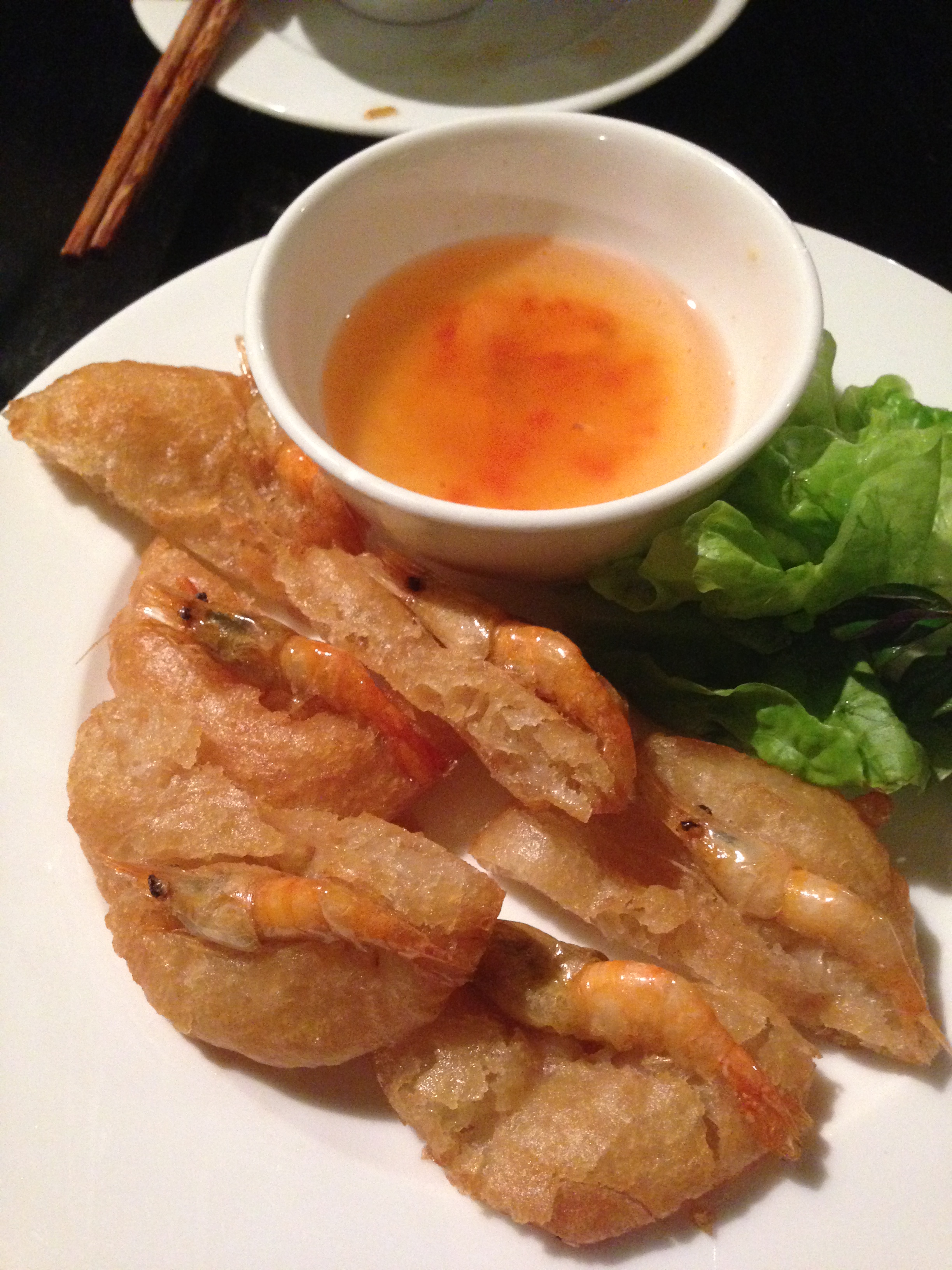 Not a bad roll at all! Tasty. Next up for us was Hanoi West Lake Shrimp Cakes, or Bánh tôm Hồ Tây. This is a small shrimp found in West Lake and fried up in a fritter. So yummy!