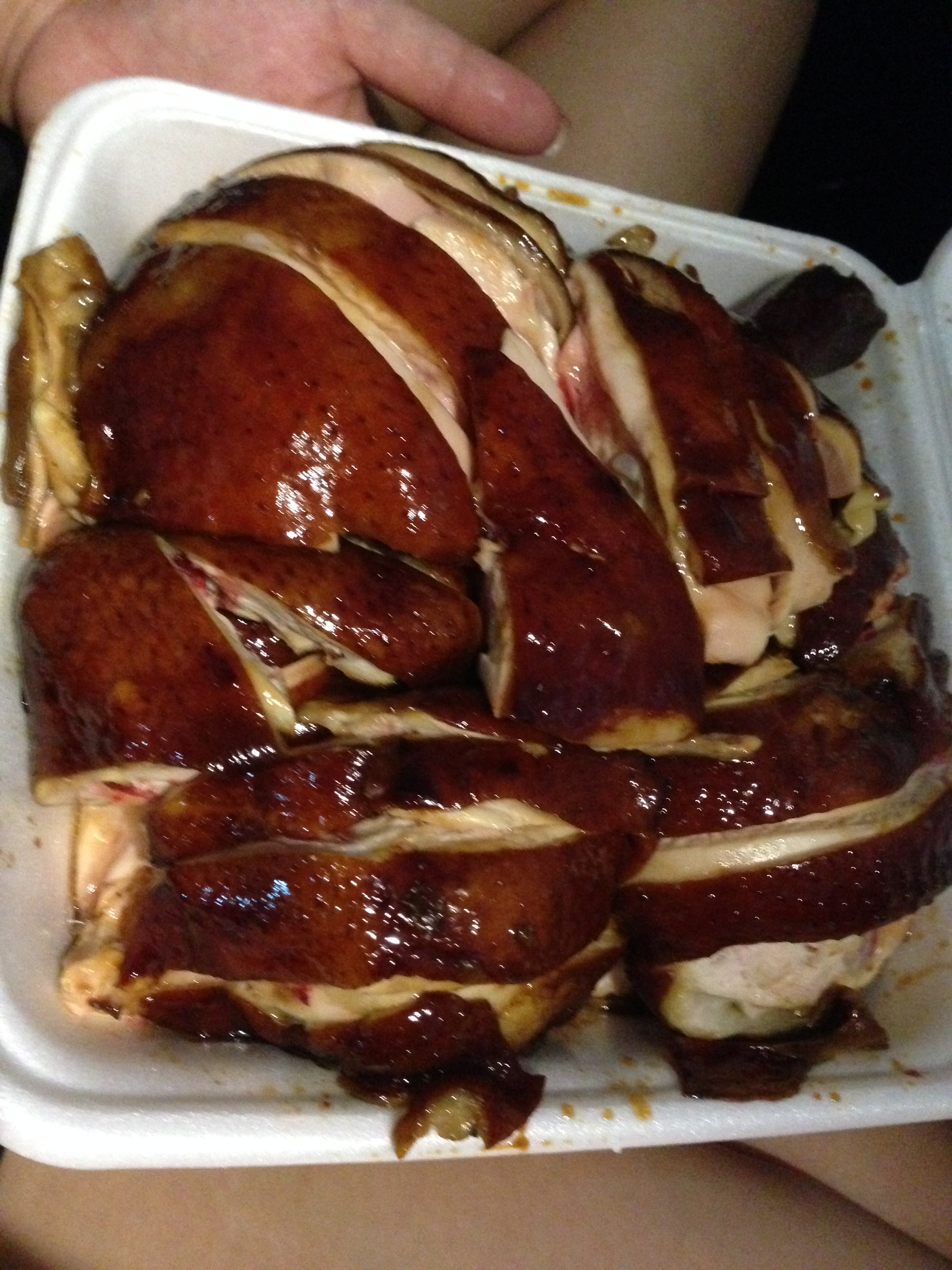 But, if you want a whole chicken or piece of char siew without it being chopped, you can go to the front of the queue and ask for it. No chopping allowed, but you can jump the queue if you want to cut it yourself.