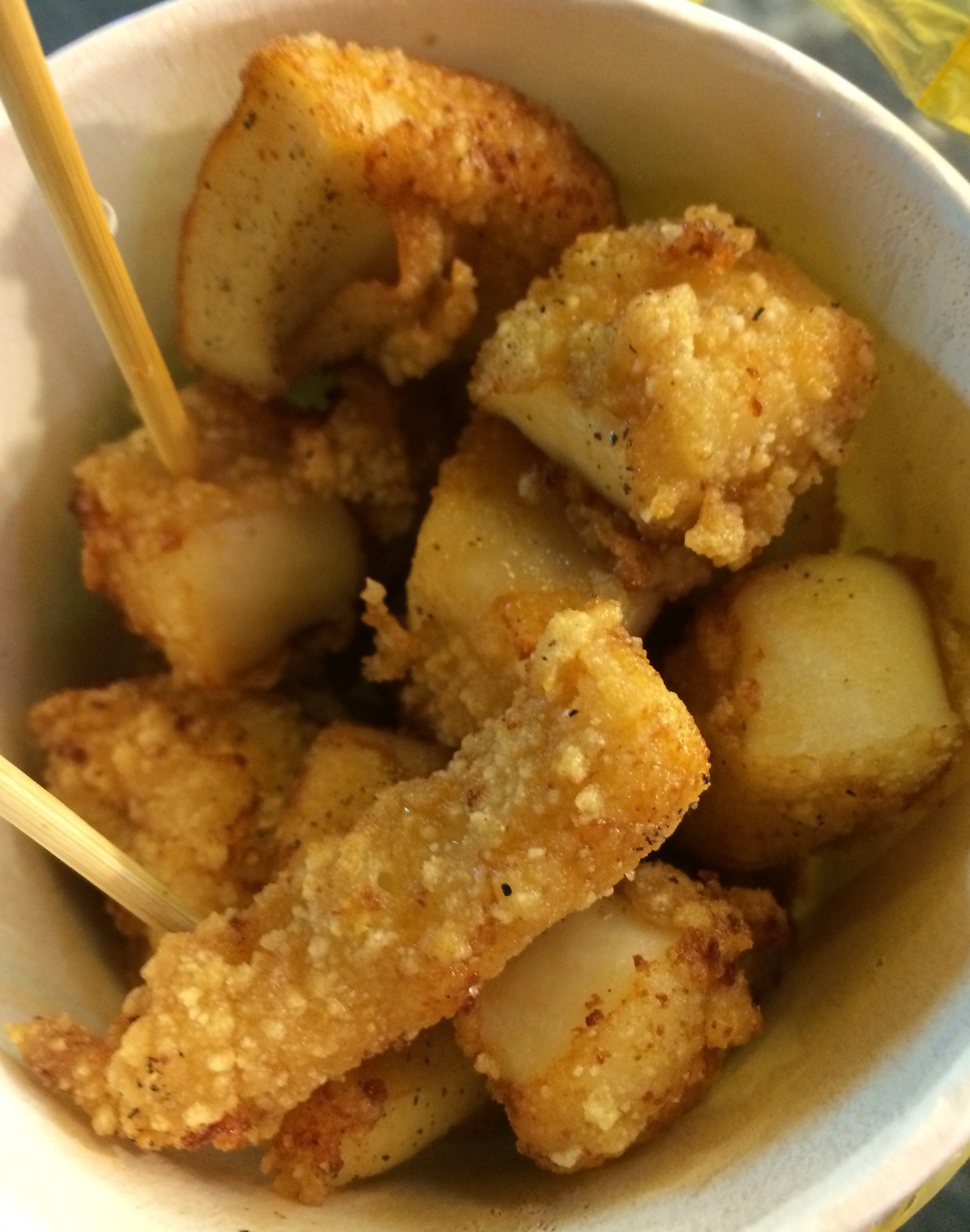It is a piece of pork wrapped around leeks and onions and then finished off with a sweet glaze. Not bad at all! A little heavy on the leek and onion side, but the taste was excellent. And the queue wasn’t bad, I got to the front in about 5 minutes.