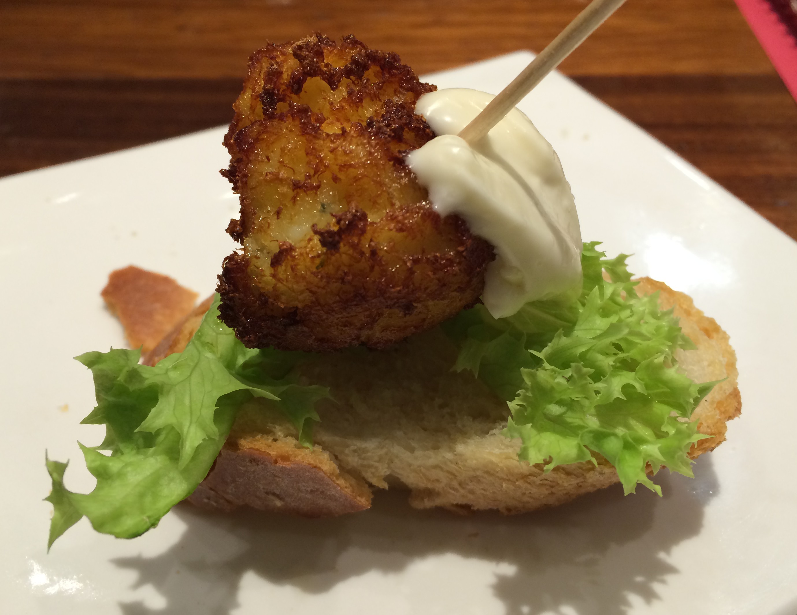 We just toured Casa Batlló, and our dinner reservation was not for another 2 hours, so we needed a little bite in order to get through to dinner. We saw Txapela Euskal Taberna across the street and decided to go in and have some Tapas, as that’s what you do in Spain!