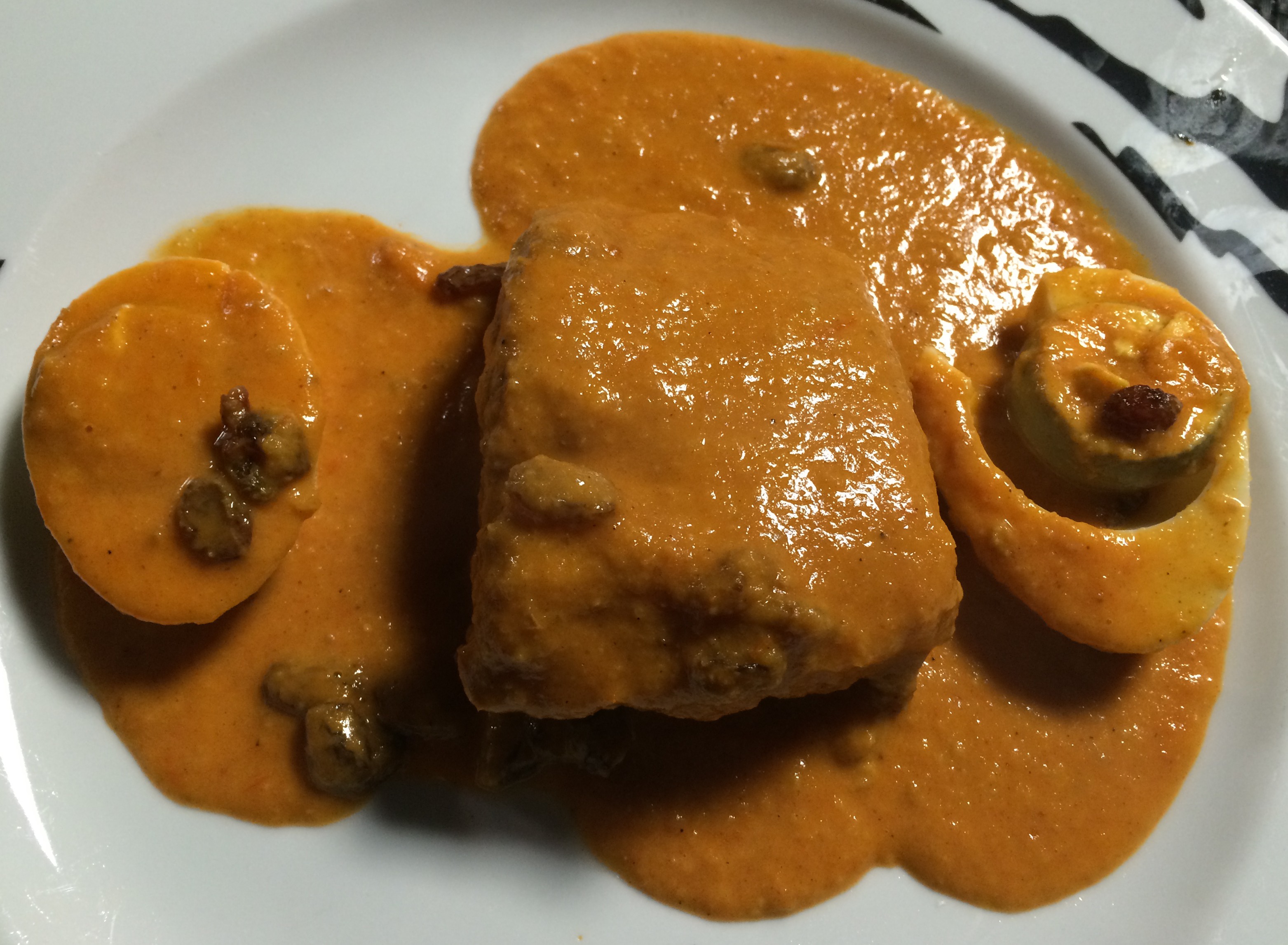 Cod Fish with a tomato-type sauce. Not bad at all. The fish was so nicely done.