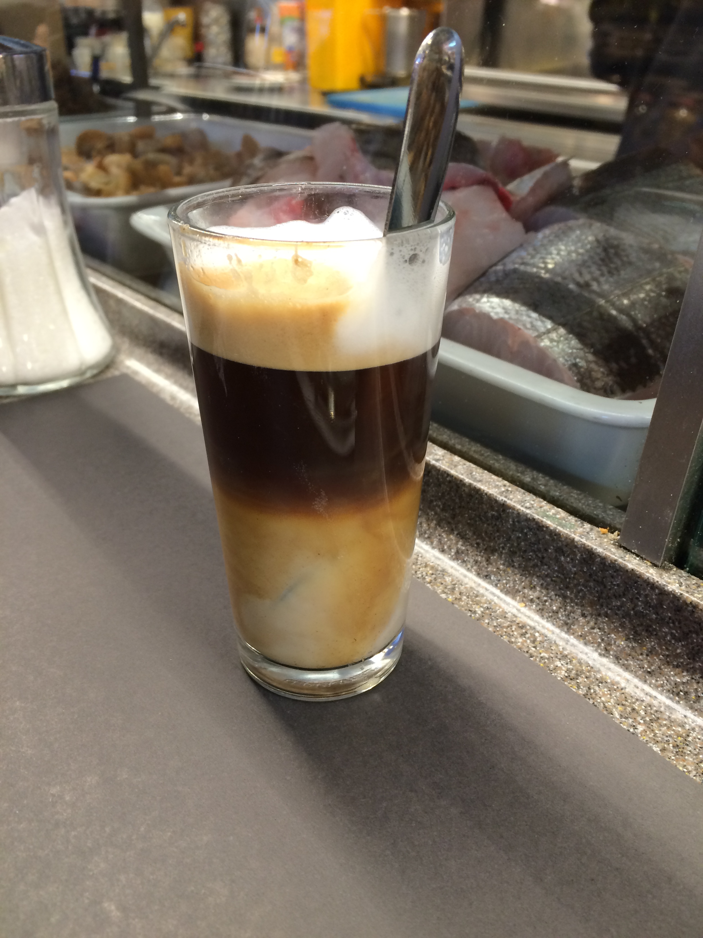 Here we have a Cappucino, interestingly done in a glass with the nice layers.
