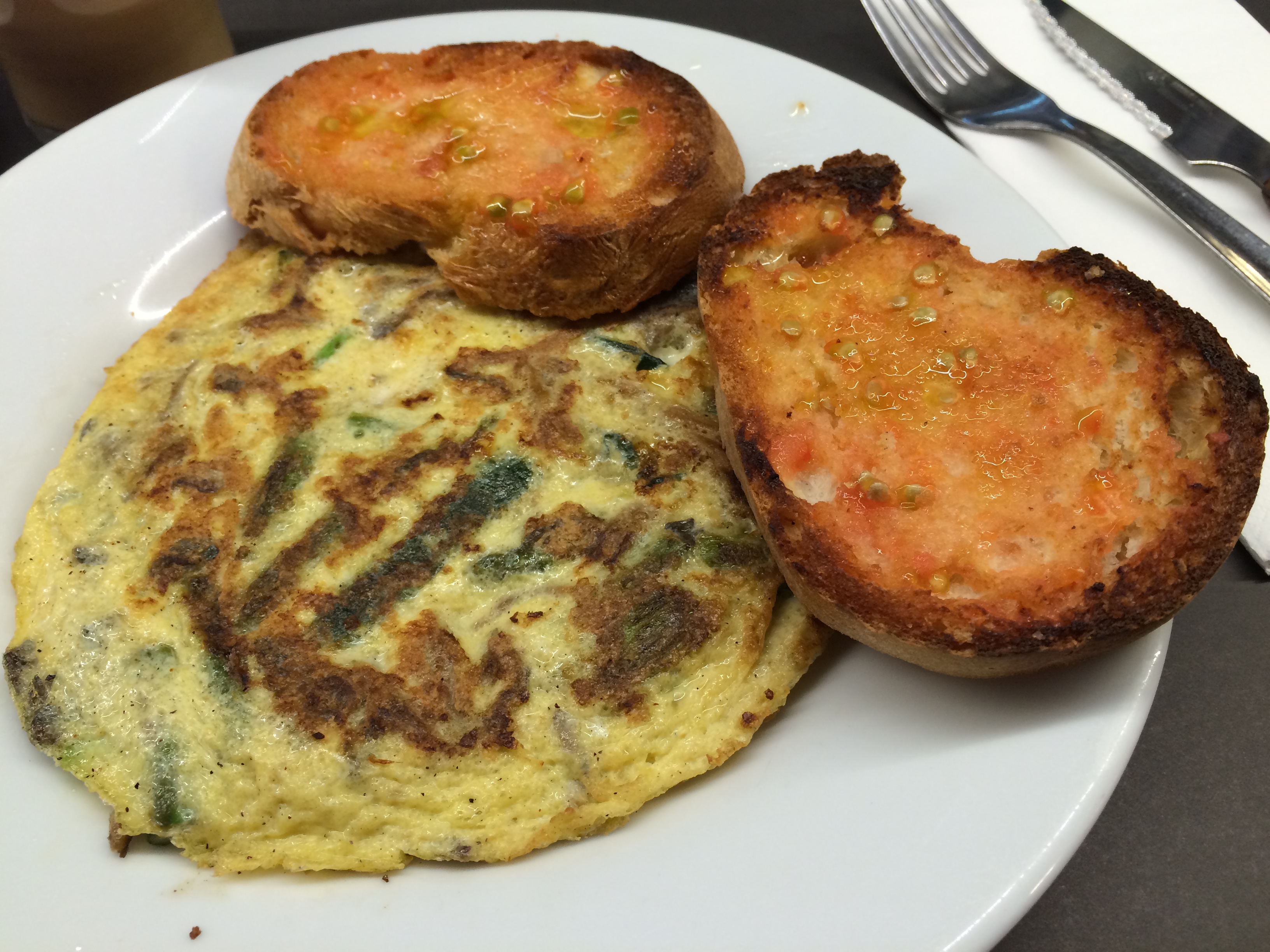 A Vegetable Tortilla with the ever present Tomato Bread, which is a Catalan breakfast staple. So good.