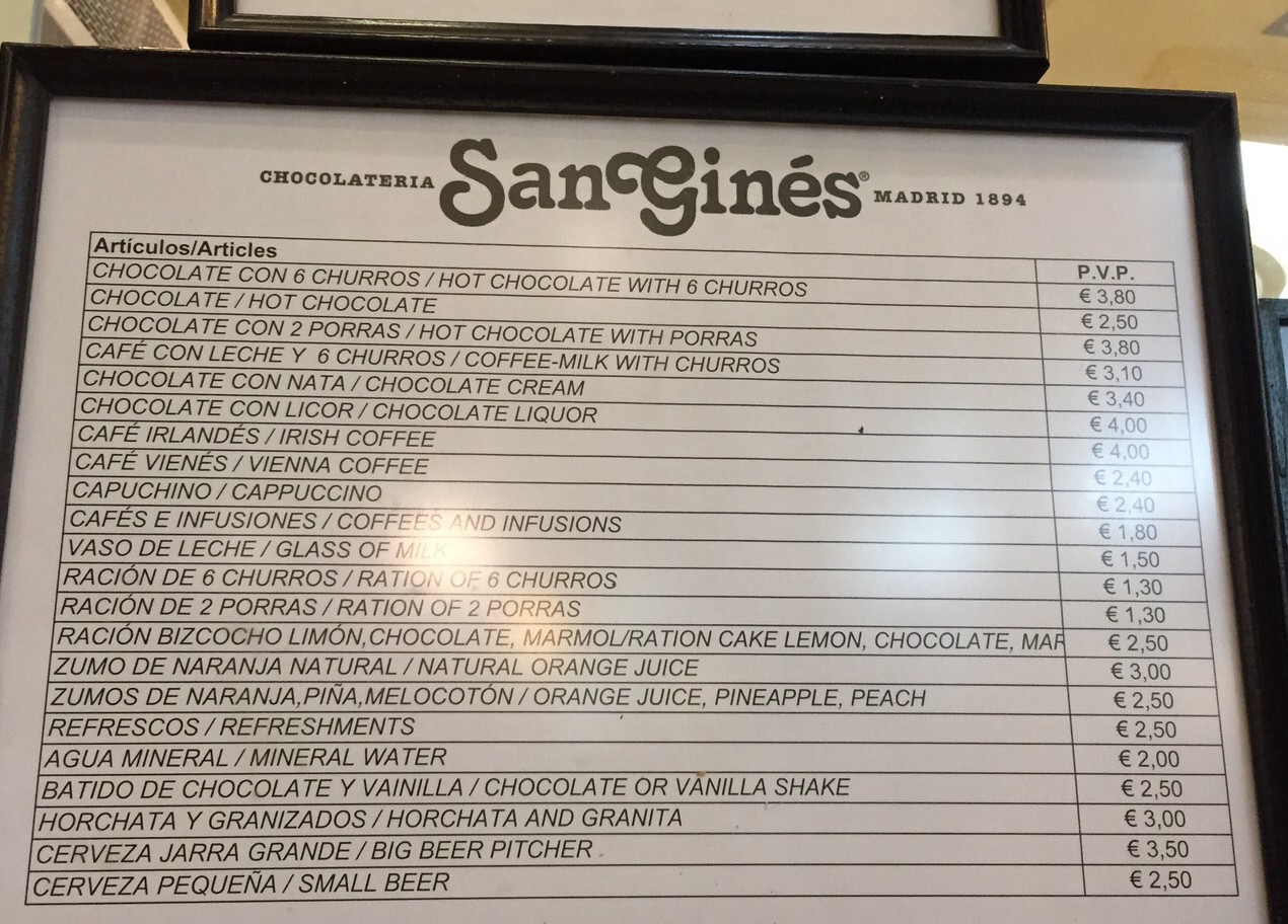The menu is simple. Churros or Porras, and then Chocolate or Coffee.